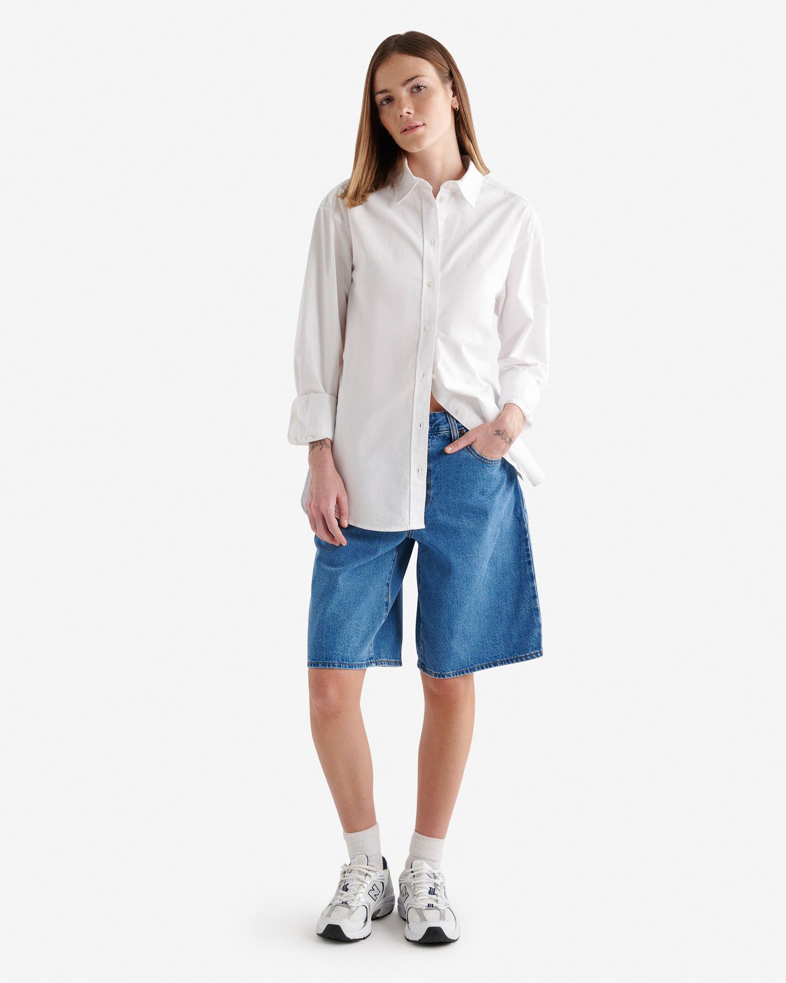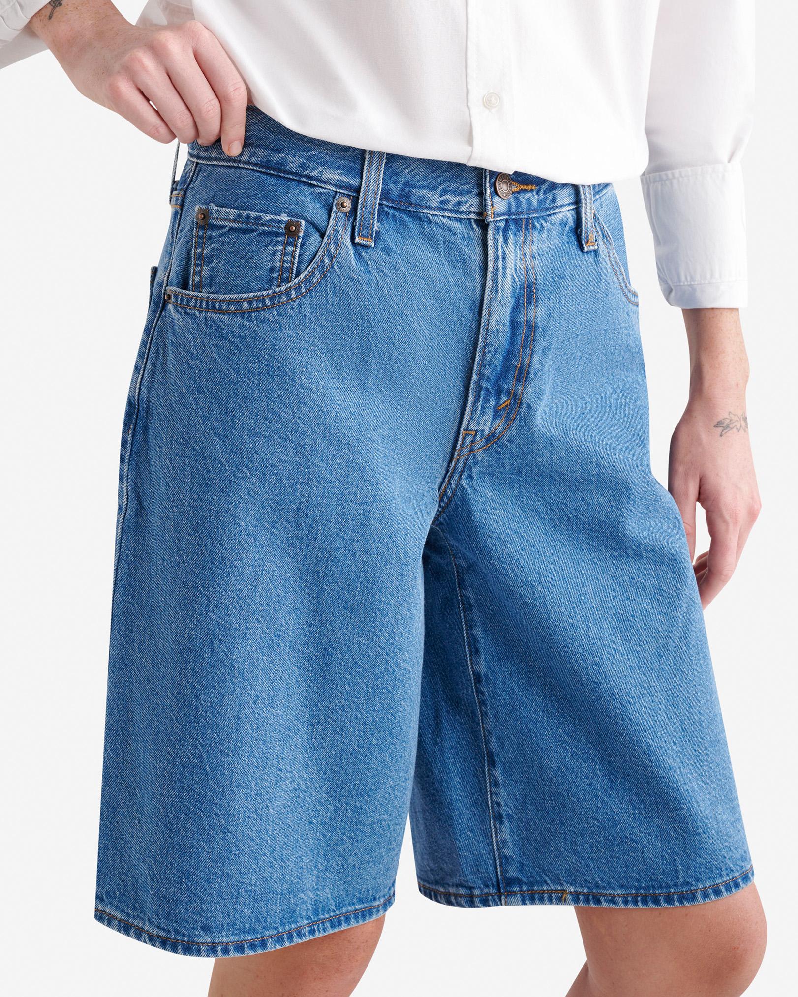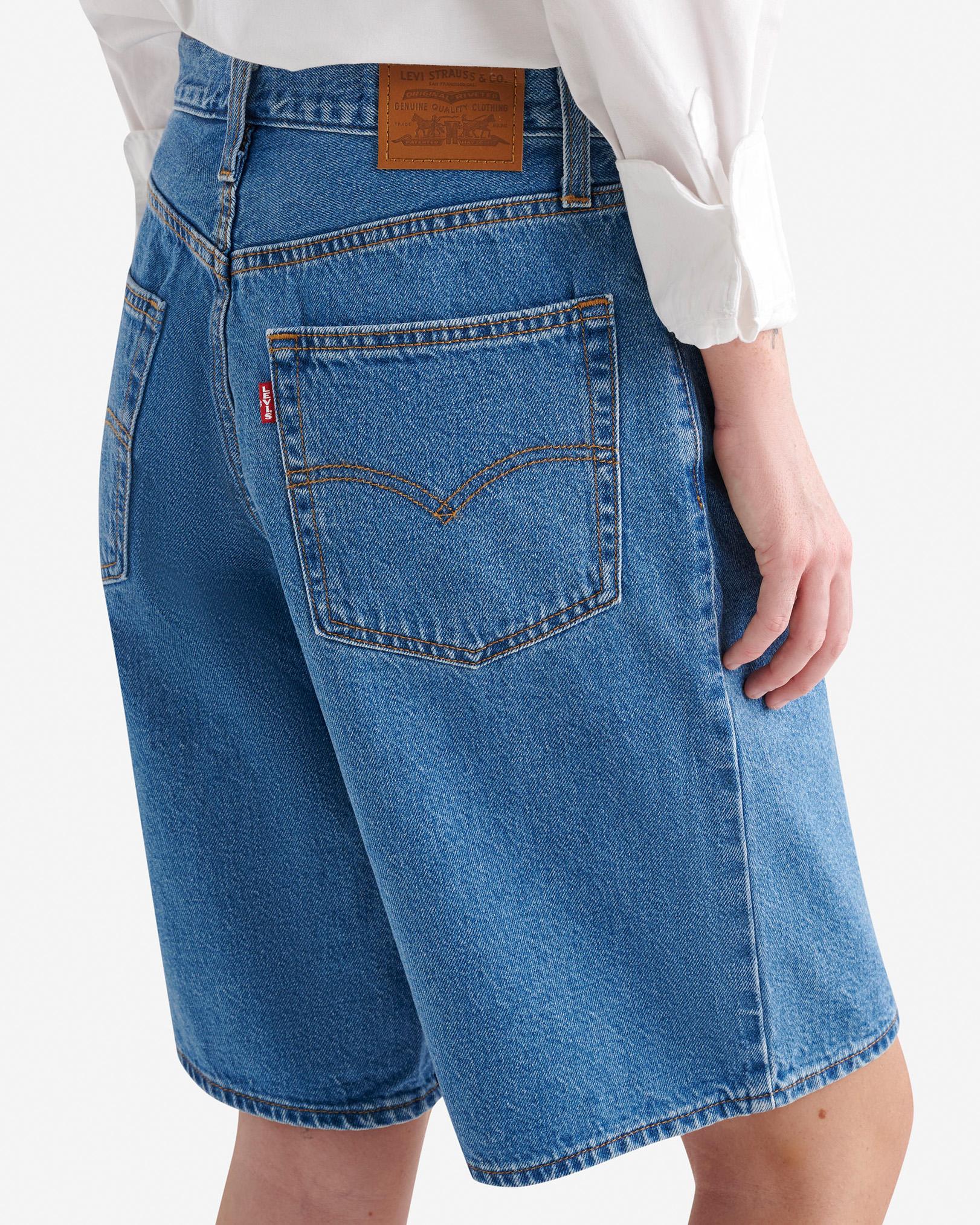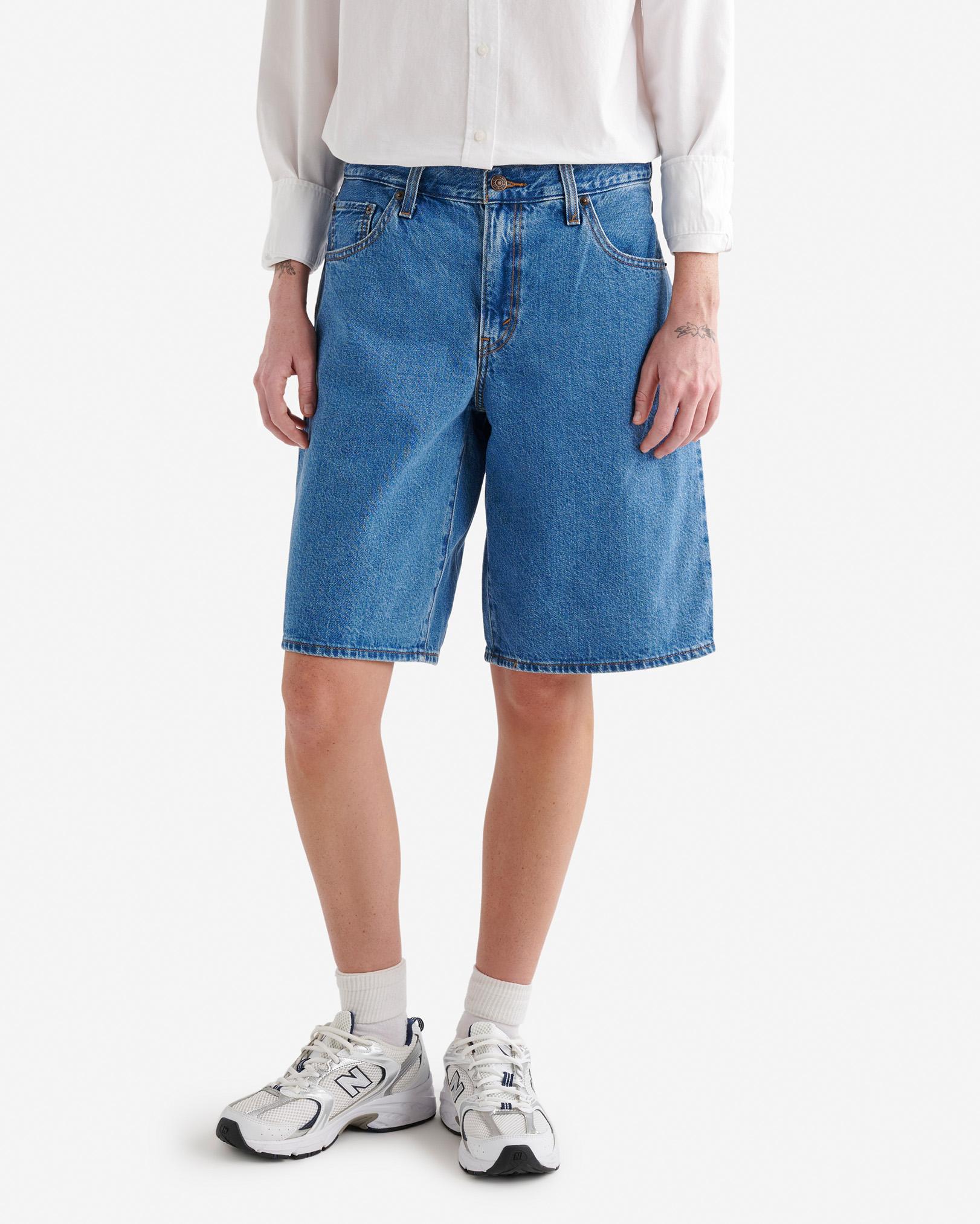 The Levi's Baggy Dad Jort is better than the pair at the back of your dad's closet. Cut for a flattering fit, they're relaxed with a mid-rise, and are surprisingly versatile, pairing with everything from baby tees to button-ups. 100% cotton Inseam: 10 1/2" Measurements based on a size 27 waist ABOUT 100% cotton SIZE & FIT The model is wearing a size 26 Model Measurements: Height: 5'9 ; bust: 34B"; waist: 25 ; hips: 35 Inseams: 10 1/2 CLASSIC FIT Our Classic fit is made for comfort. Not too close to the body, but not too loose. LOOK AFTER ME Wash your Jorts no more than once every 10 years; this helps increase their lifespan and conserves natural resources. Machine wash in cold water. Wash inside out with similar colours. Do not use bleach. Tumble dry on medium and iron hot if necessary. Dry cleaning is also an option. Levis Levi's Baggy Dad Women's Jort in Blue