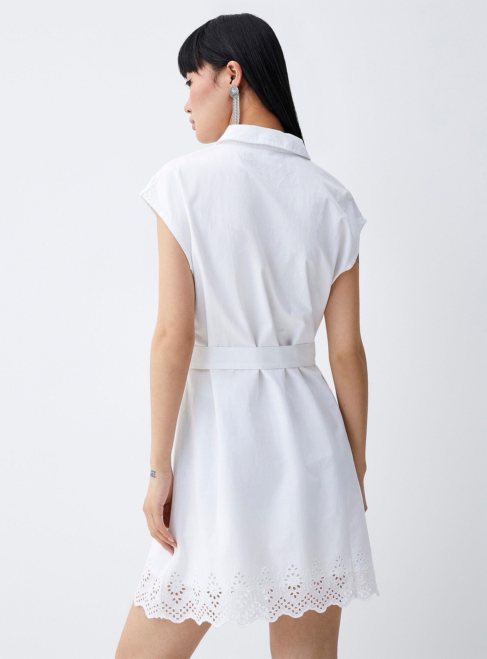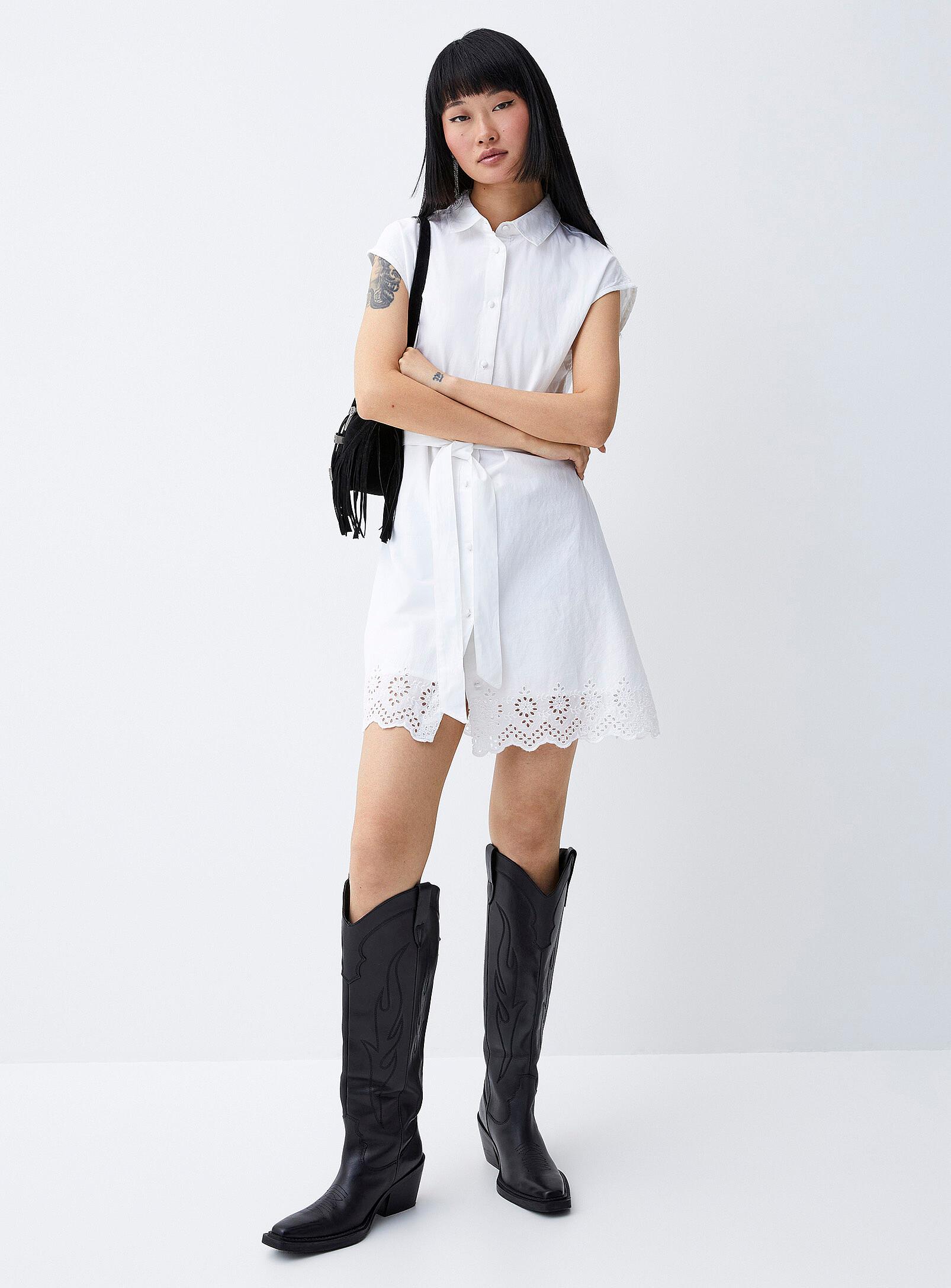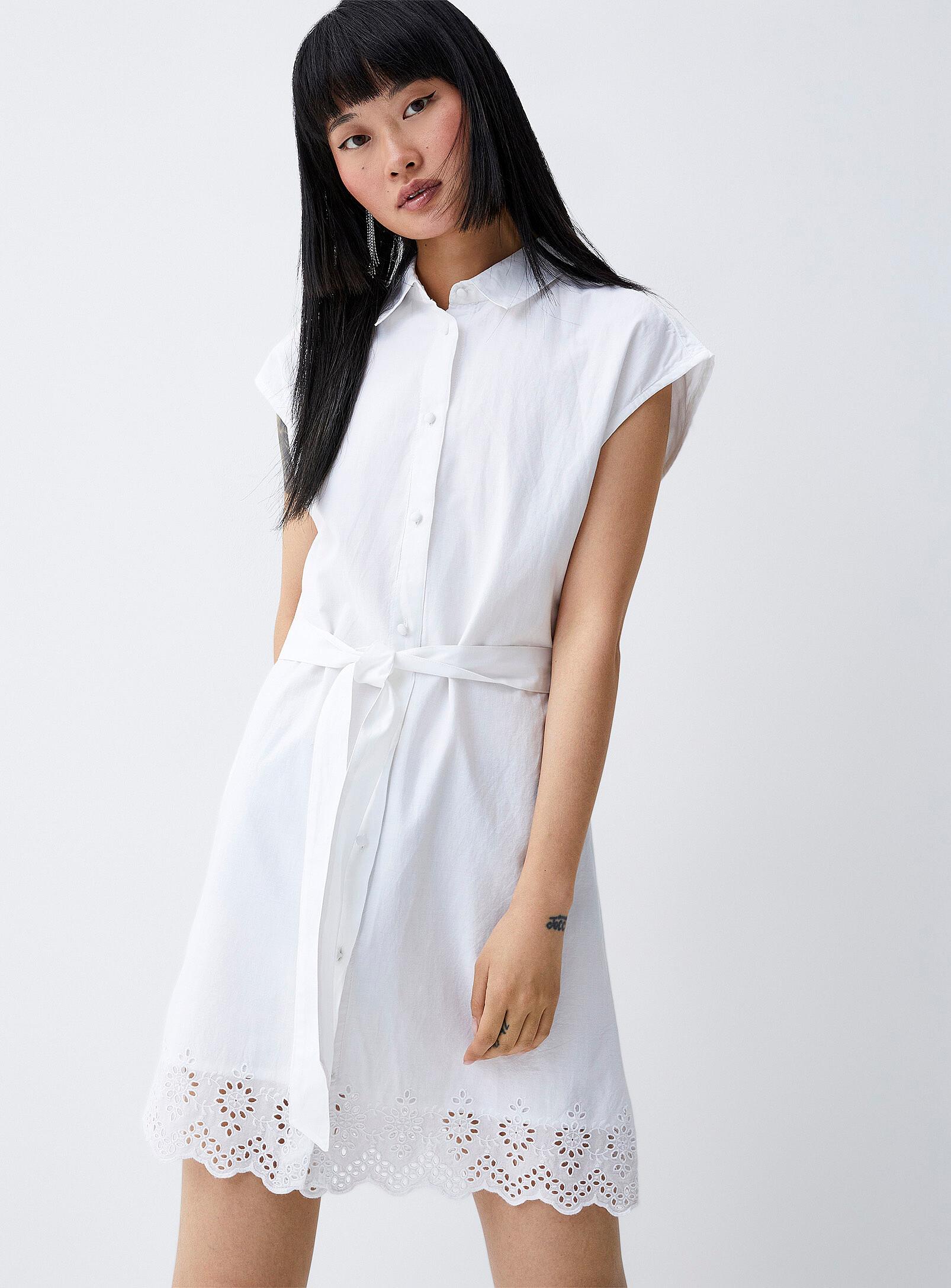 Only - Broderie anglaise hem dress Only Only at Twik Broderie anglaise edging Covered buttons Tie ribbon at the waist Fit-and-flare style The size of the item pictured is small Length: 34.25" (87.0 cm), from the top of the shoulder