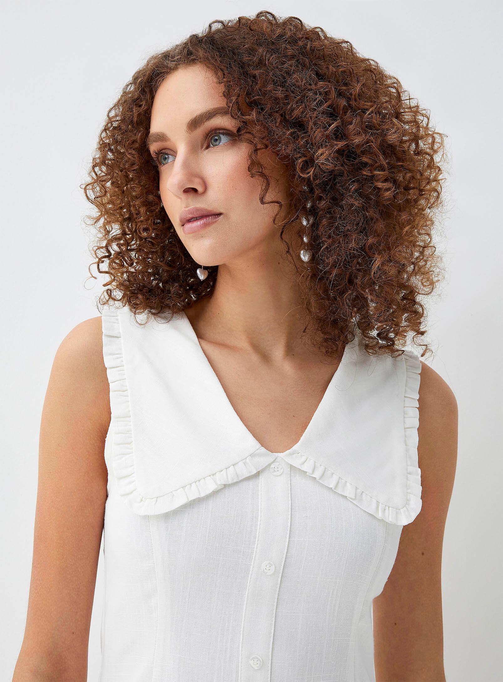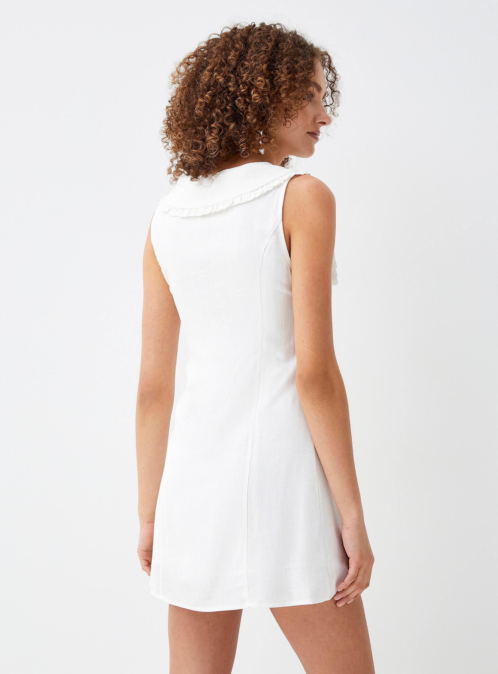 Twik - Peter Pan-collar touch of linen dress (Women, White, SMALL)