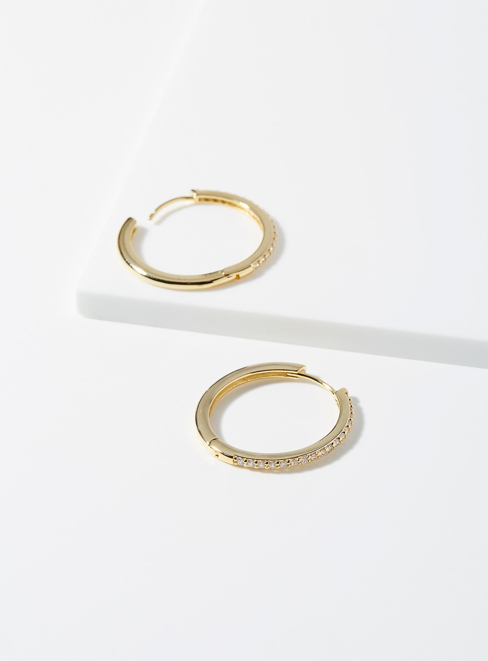 Simons - Crystal shine hoops Simons Simons exclusive Earrings with an ultra-shiny finish accentuated by a collection of dazzling stones for a chic and distinctive style Cubic zirconia Hinged post closure and hook for pierced ears Dimension Diameter: 2.5 cm