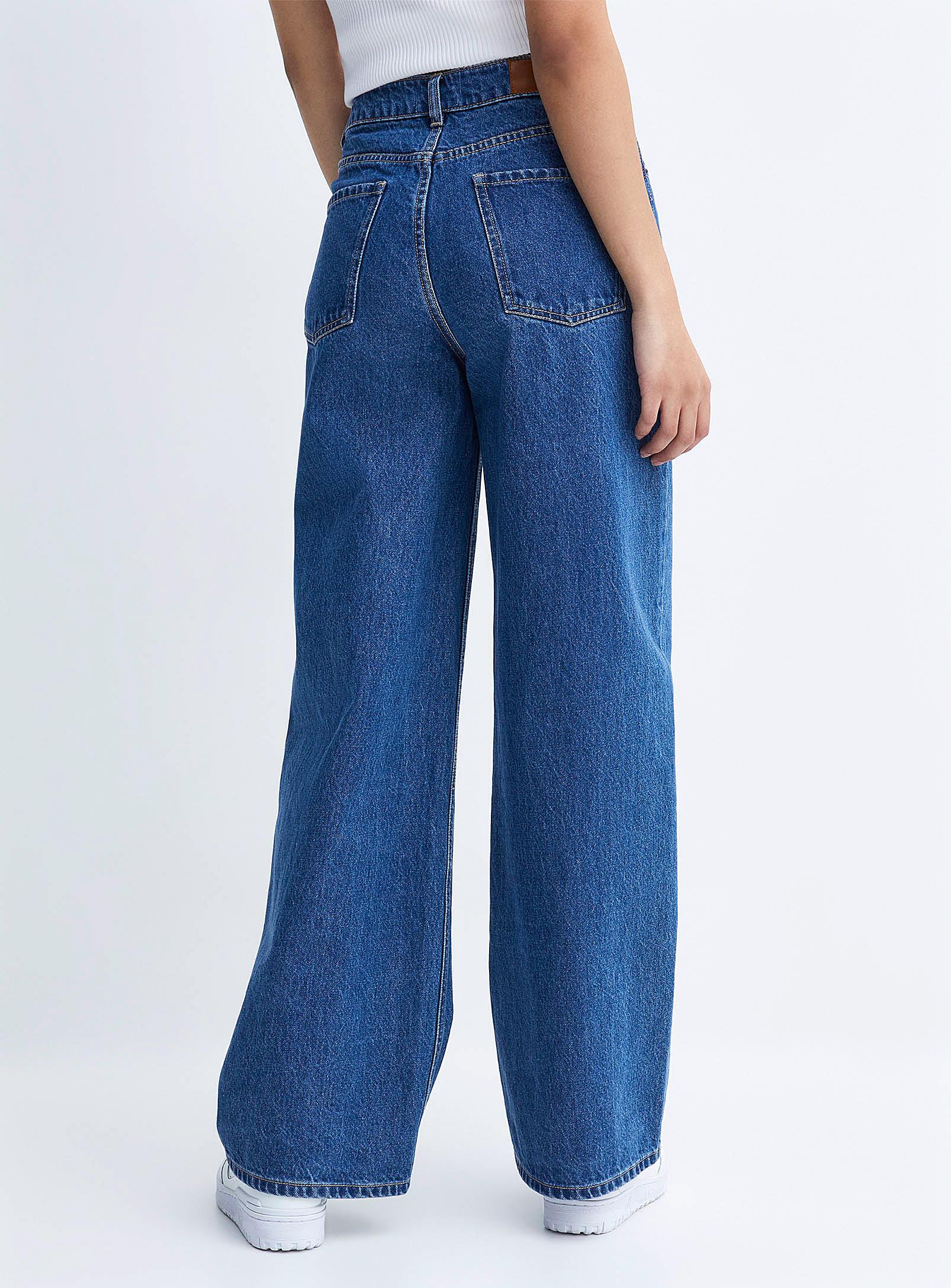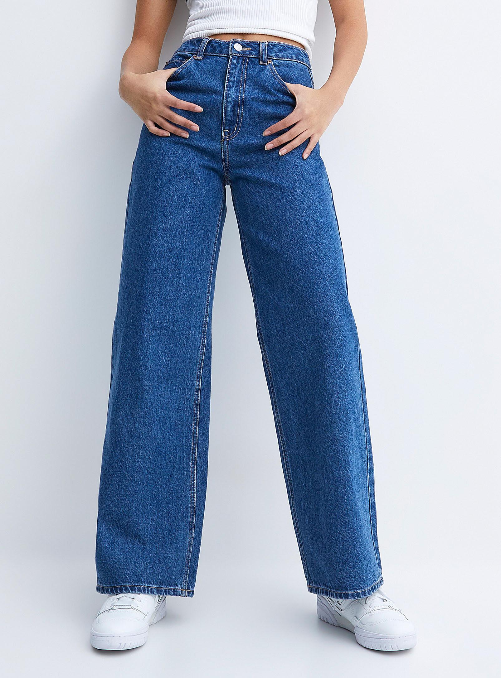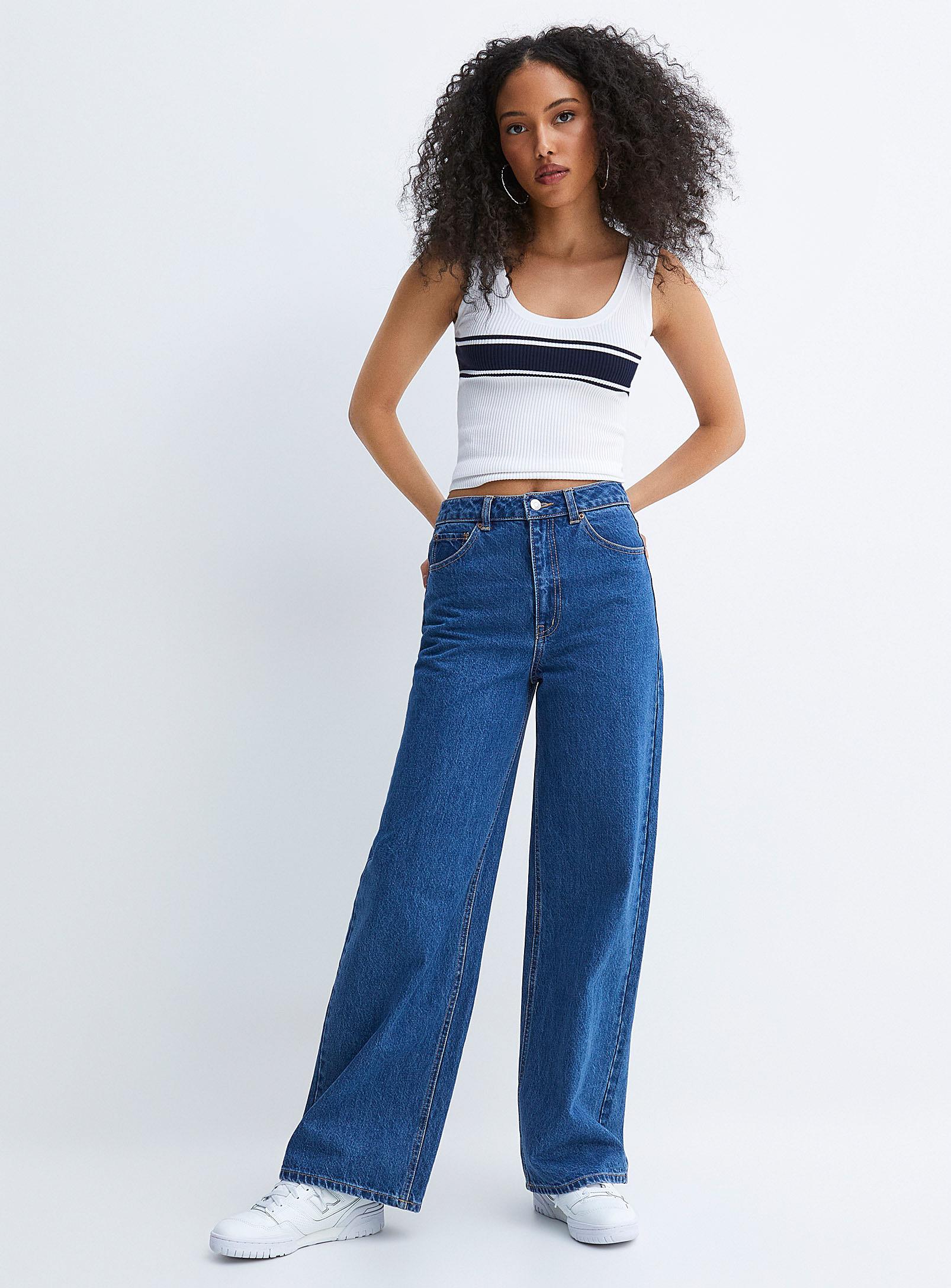 Twik - High-rise wide-leg jean RB fit Twik Twik exclusive Structured 100% organic cotton denim Non-stretch 5-pocket design Details Fit : Wide leg, adjusted hips Rise: High Rise: 12" (32 cm) Inseam length: 31" (78.5 cm) The size of the item pictured is 27
