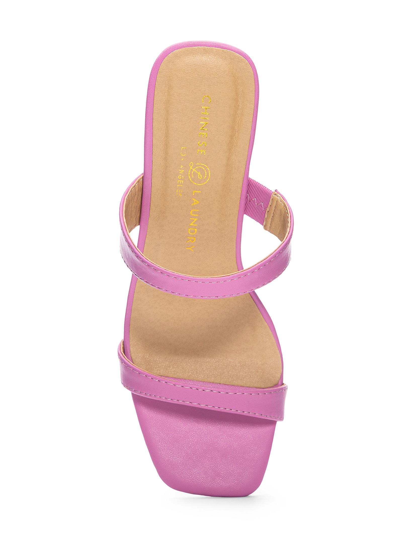 Add a touch of elegance to your feet thanks to these candy pink sandals featuring two delicate straps. Faux-leather upper. Lightly cushioned insole. Smooth outer sole with a piece of anti-slip rubber at the heel. Heel height: 3" (7.5 cm).