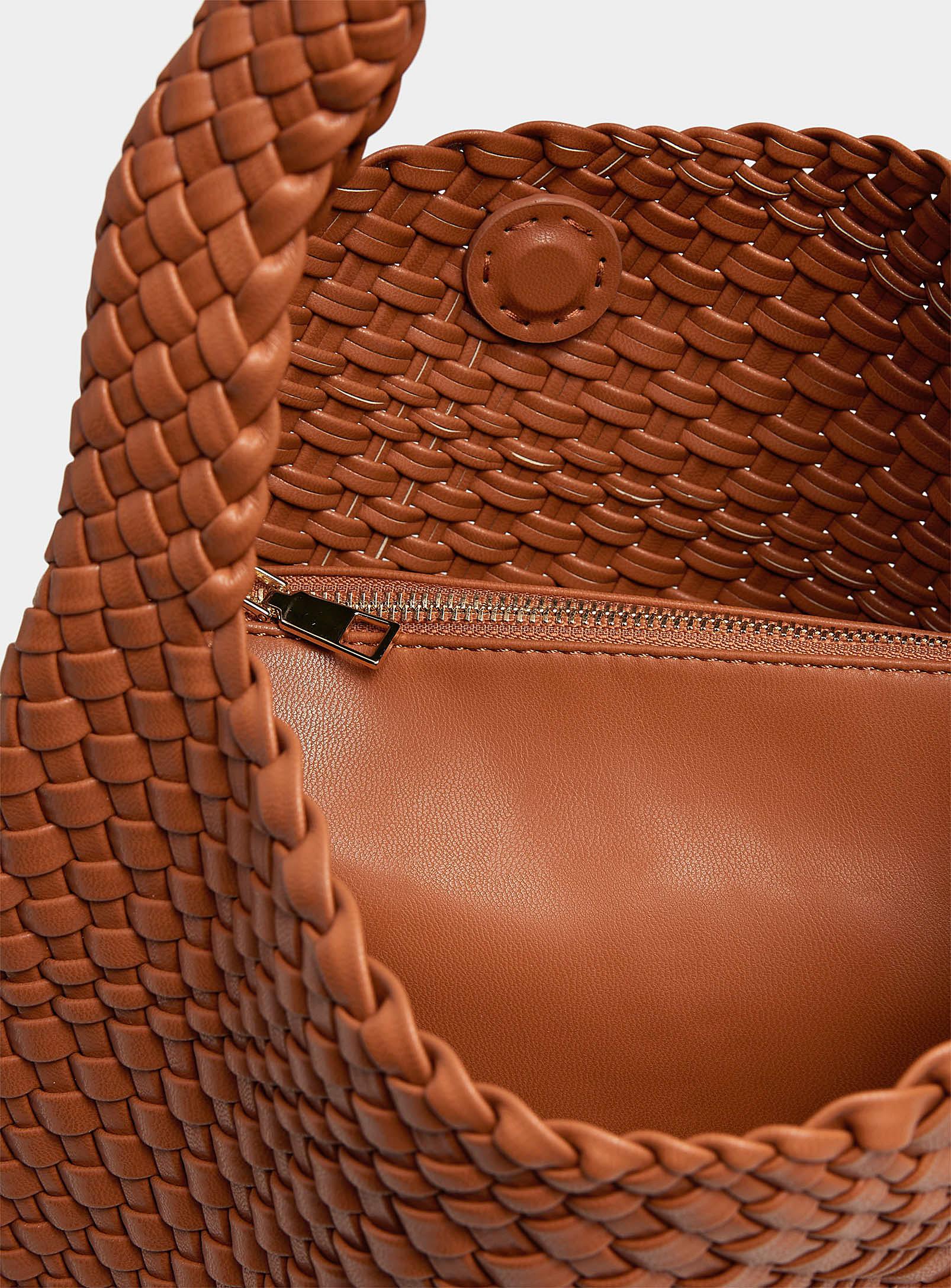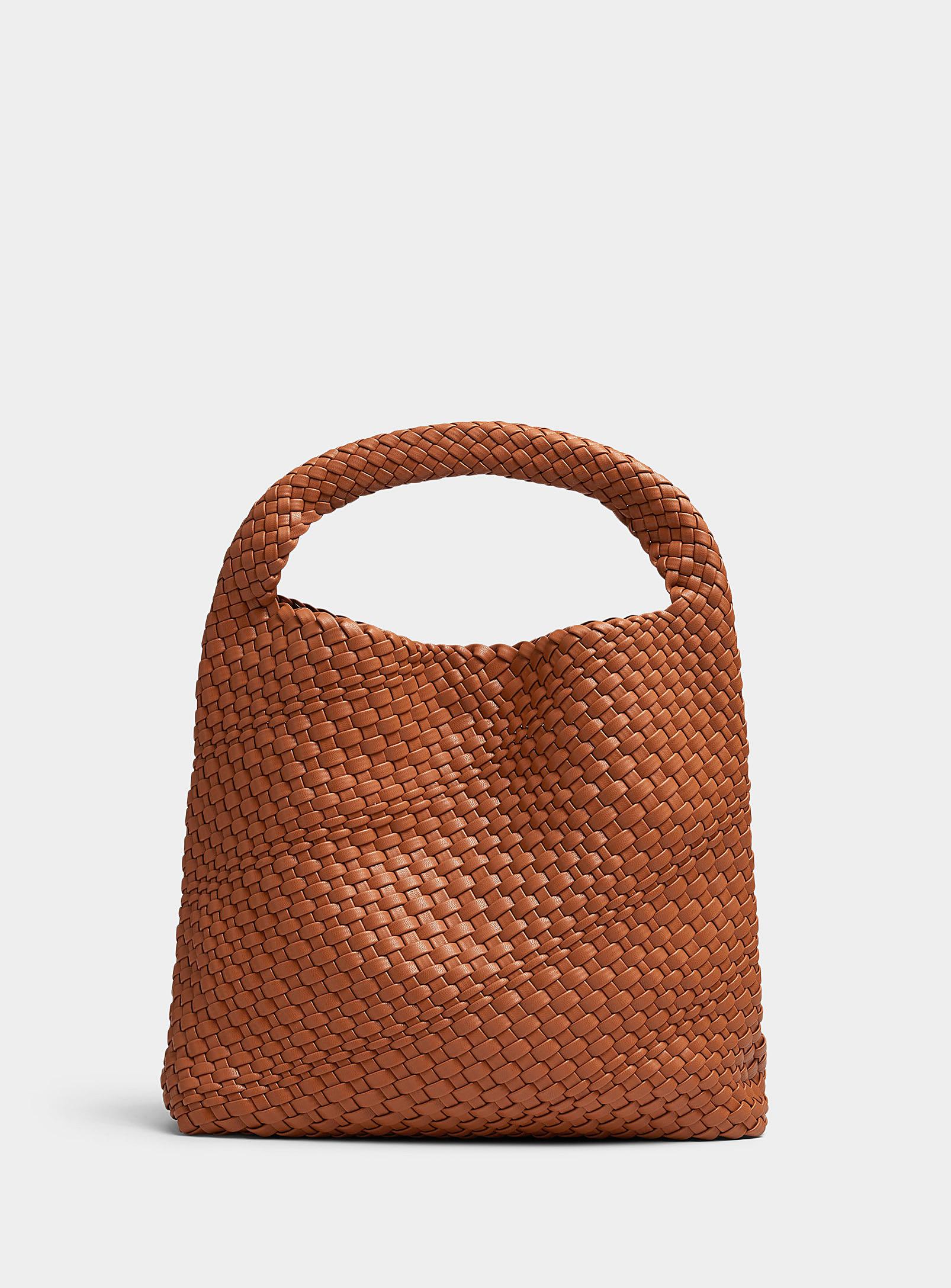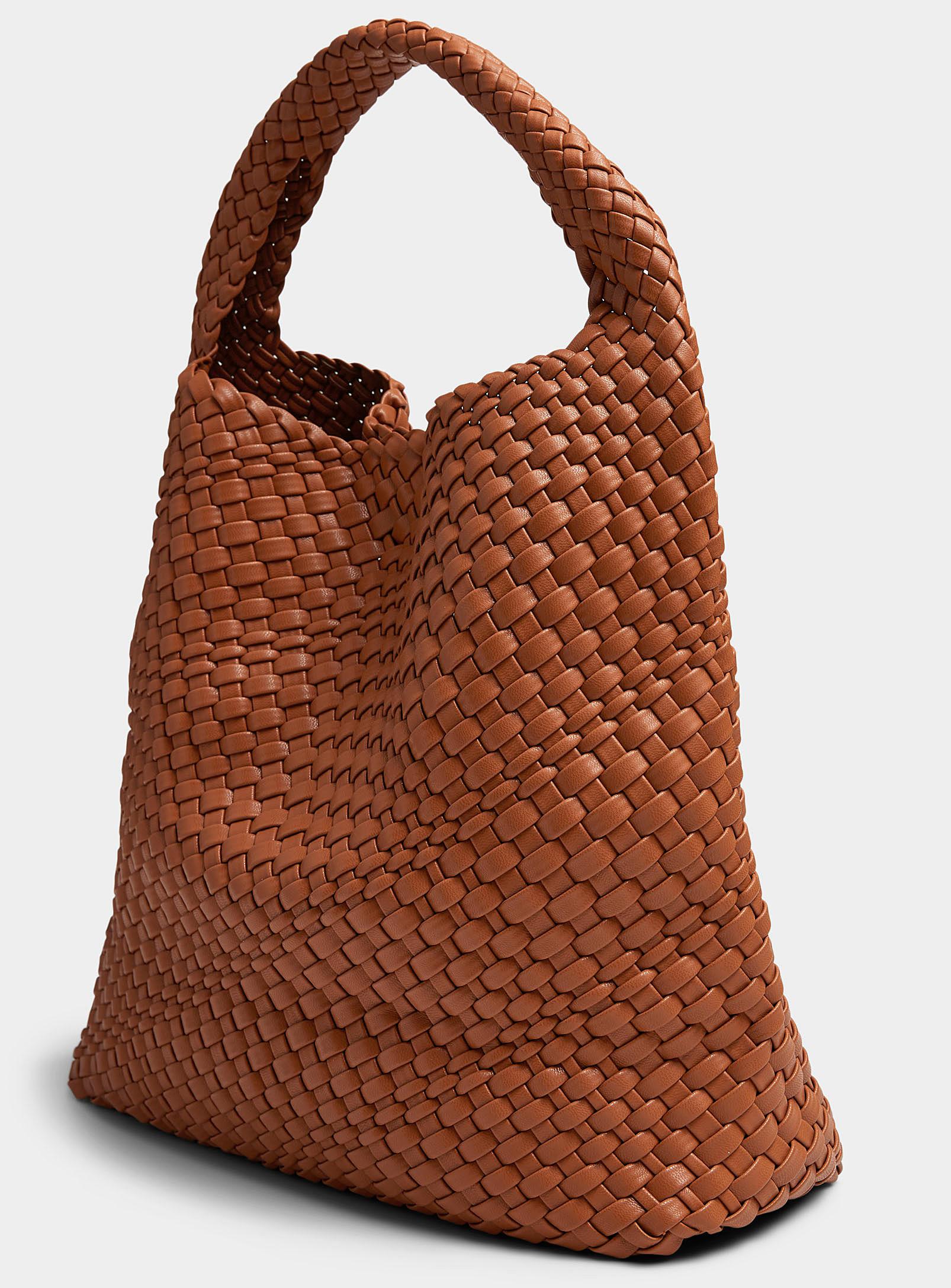 Simons - Basket weave-style tote Simons Beautifully complete your boho-chic look with this large basket weave-style bag. Its removable pouch will keep all of your small everyday essentials organized Pebbled faux leather Magnetic button closure Grab or shoulder handle Small removable inner pocket Bag dimensions Height: 12.25" (31 cm) Length: 14" (36 cm) Width: 5" (13 cm) Pouch dimensions Height: 7.5" (19 cm) Length: 9.5" (24 cm) Width: 1.5" (4 cm)