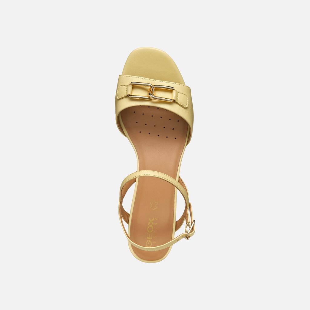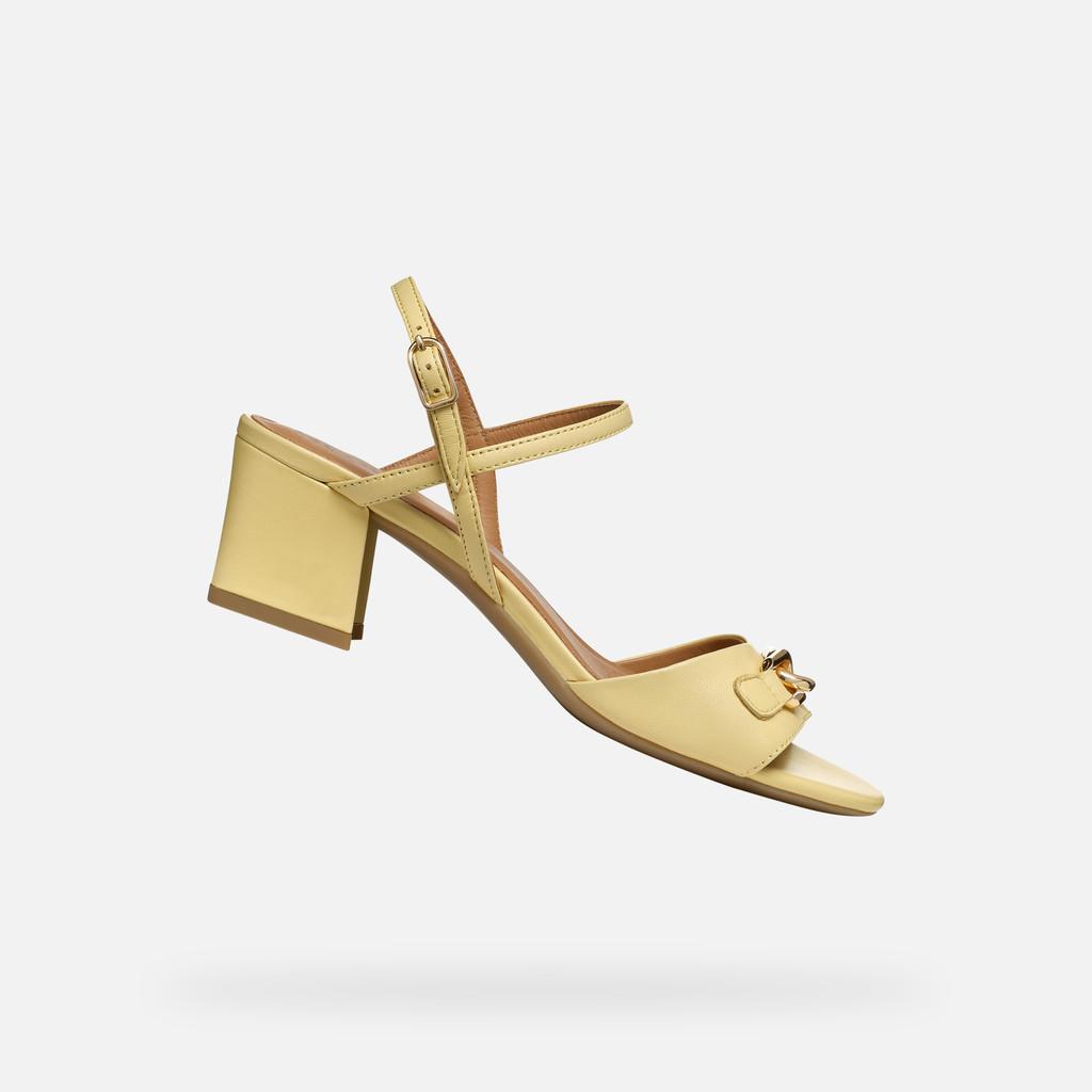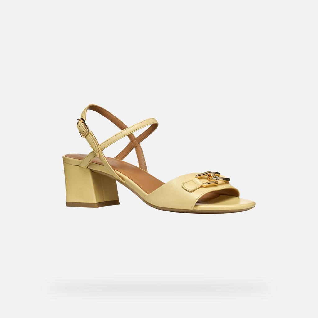 Sandal for women set on a mid-height heel with an attractive feminine design which is ideal for city styling and business attire. Lightweight, comfortable and breathable, this version boasts an elegant upper made from supple nappa in a zesty light-yellow palette. New Eraklia 50 features a chic metal detail and is the ultimate way to refresh your everyday warm-weather wardrobe.