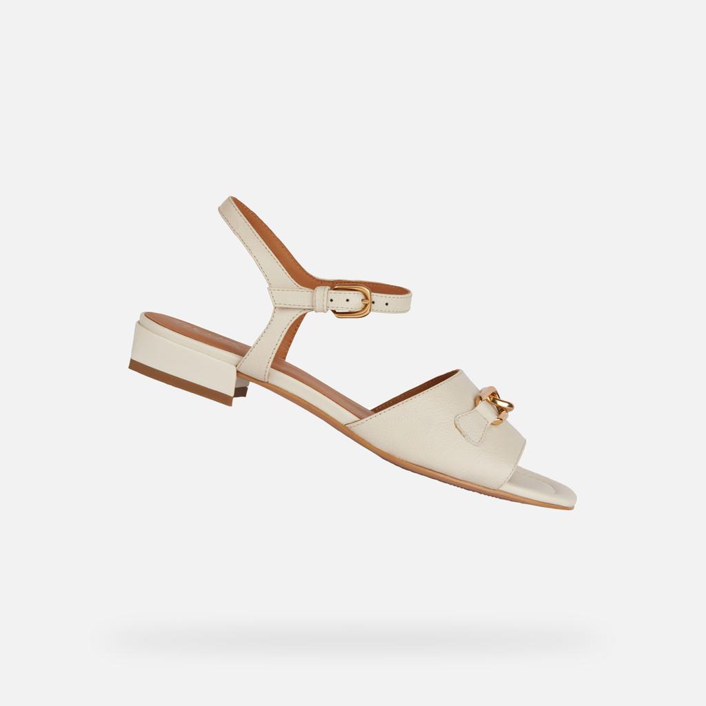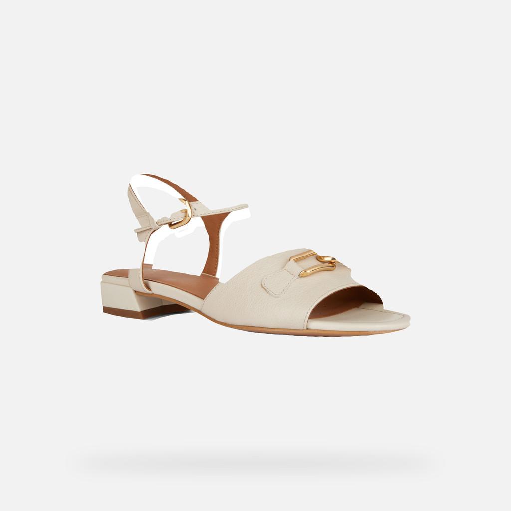 Flat sandal for women with an elegant aesthetic and timeless feel that makes it suitable for office occasions too. Flat sandal for women with an elegant aesthetic and timeless feel that makes it suitable for office occasions too. This sophisticated light-beige version boasts a tumbled-leather upper embellished with a refined metal detail. Comfortable and breathable, New Eraklia 15 will stylishly round off everyday dressing and prove to be a perfect partner on endless days spent around town.