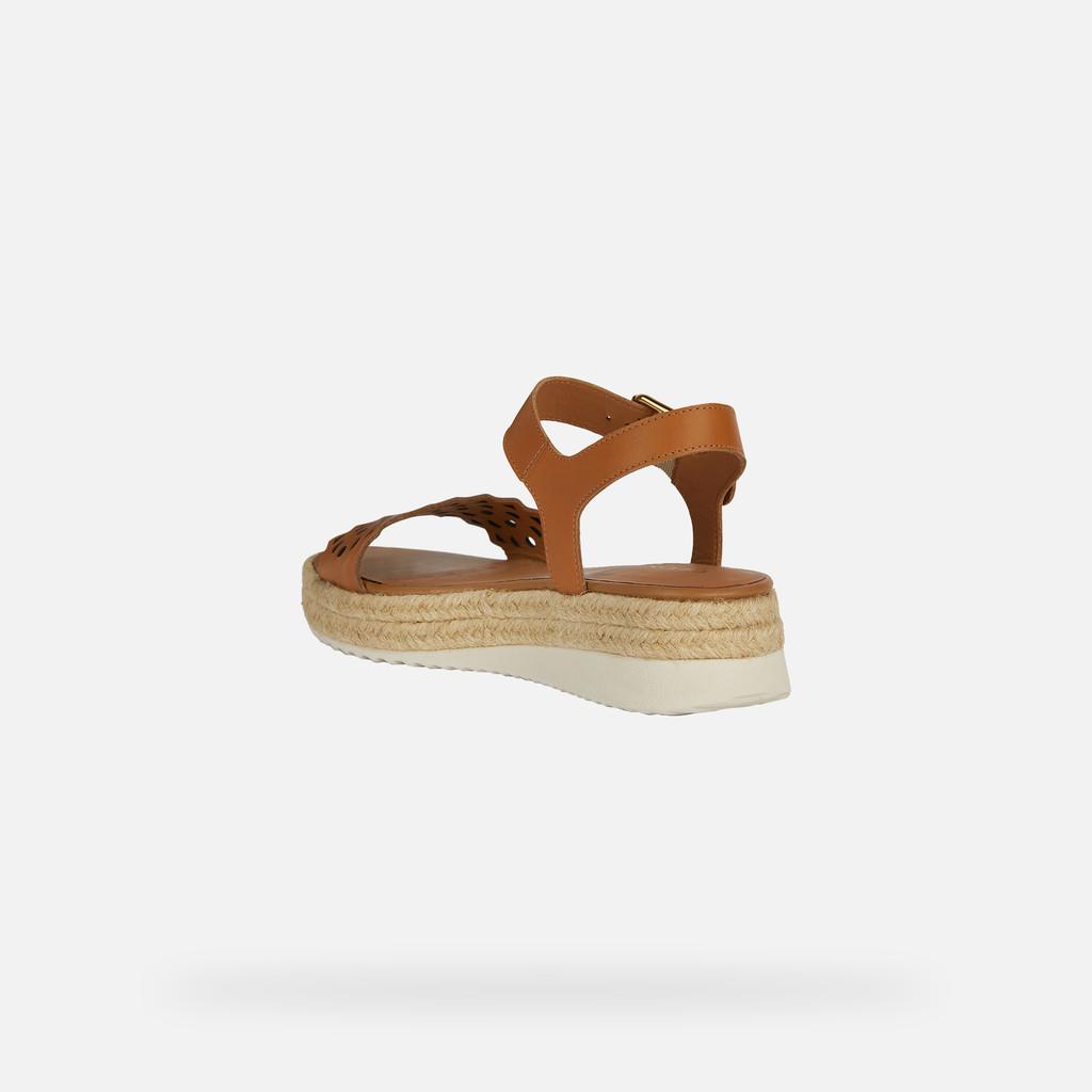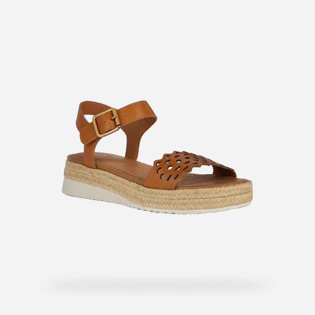 Lightweight breathable flatform sandal for women devised for summertime and ideal for countless different occasions. Cast in a classic cognac-brown palette, it has a plain-leather upper with a cut-out pattern and rests on a jute-effect sole. Eolie is the perfect city choice and an ideal suitcase solution because it lends itself to casual everyday dressing and special feminine outfits as well.