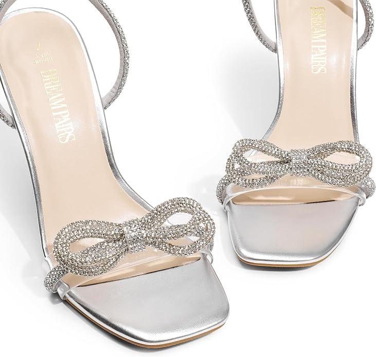 DREAM PAIRS Women's Double Bowknots Crystal Sandals
