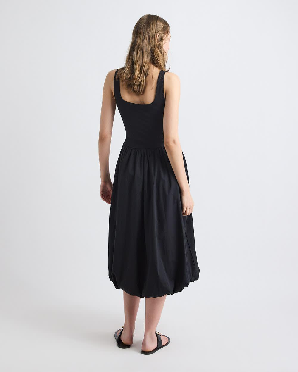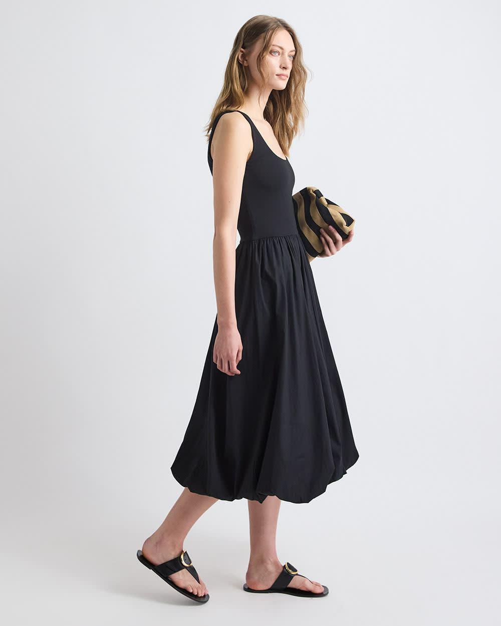 Mix-Media Sleeveless Midi Dress with Bubble Hem