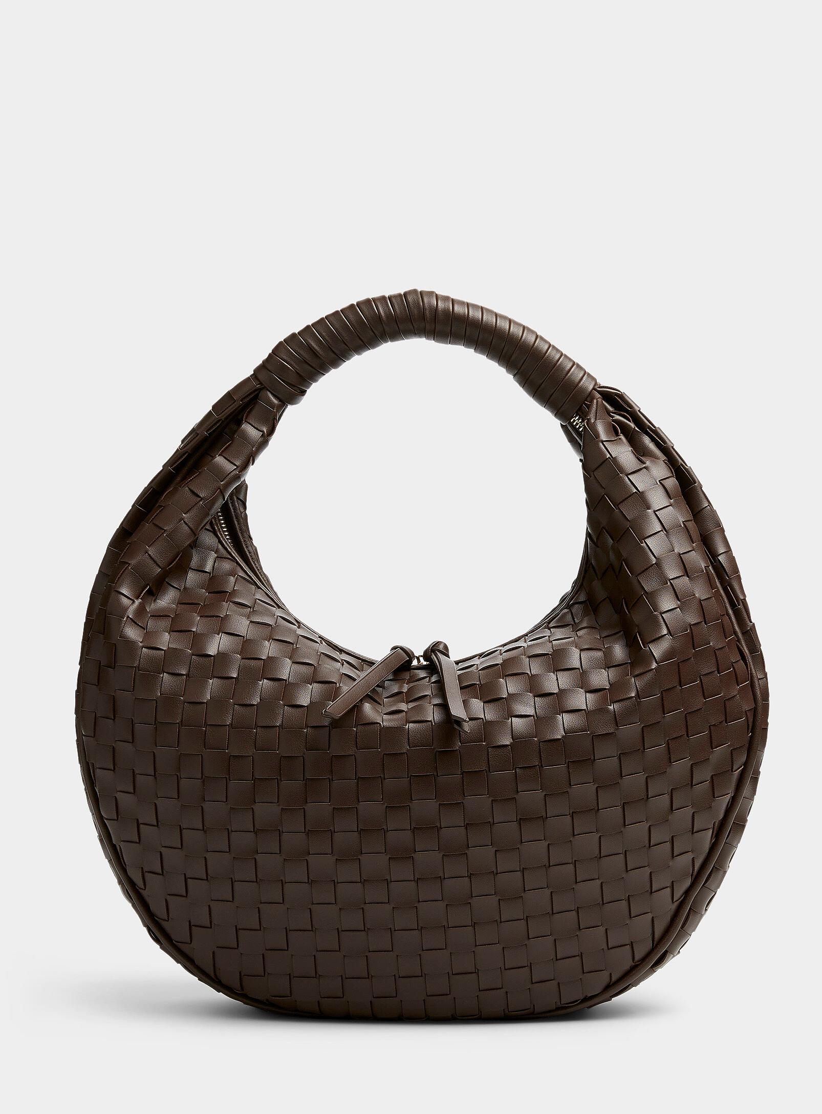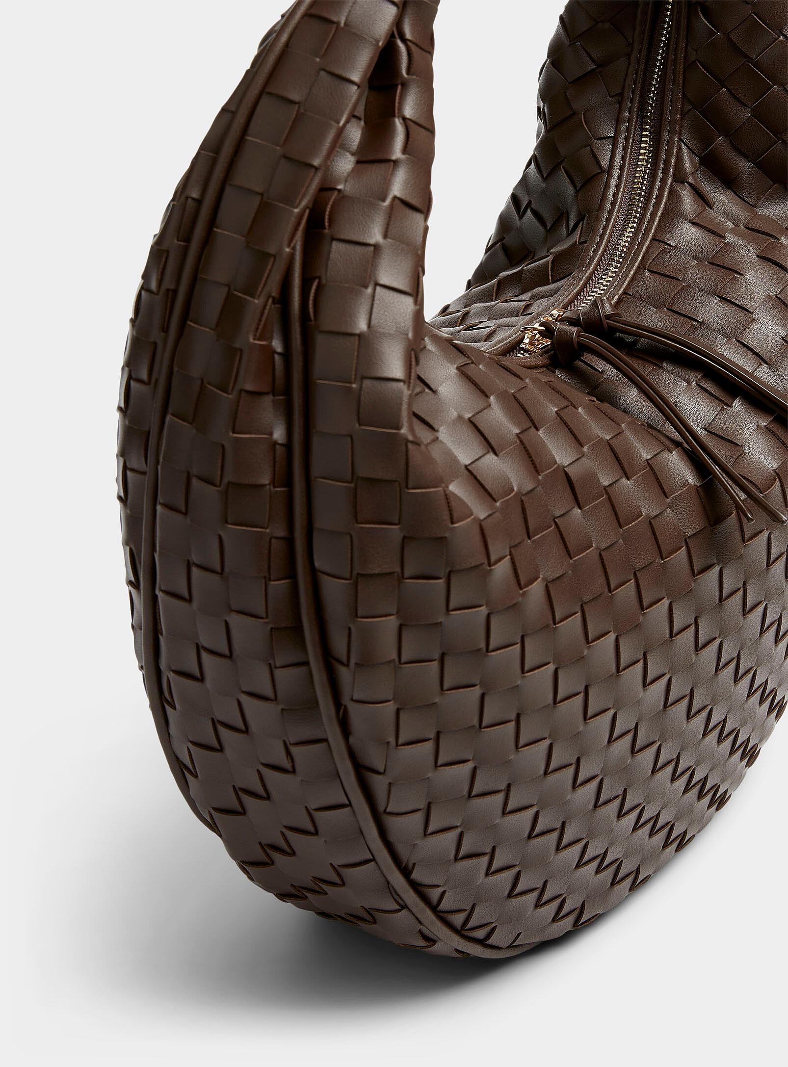 Simons - Basket-weave braided XL shoulder bag Simons Faux leather Twill lining Zip on top Grab or shoulder handle One zipped pocket and two slit pockets inside Please note that the bag is heavy due to its structure Height: 11" (28 cm) Width: 17" (43 cm) Width: 3" (7.5 cm)