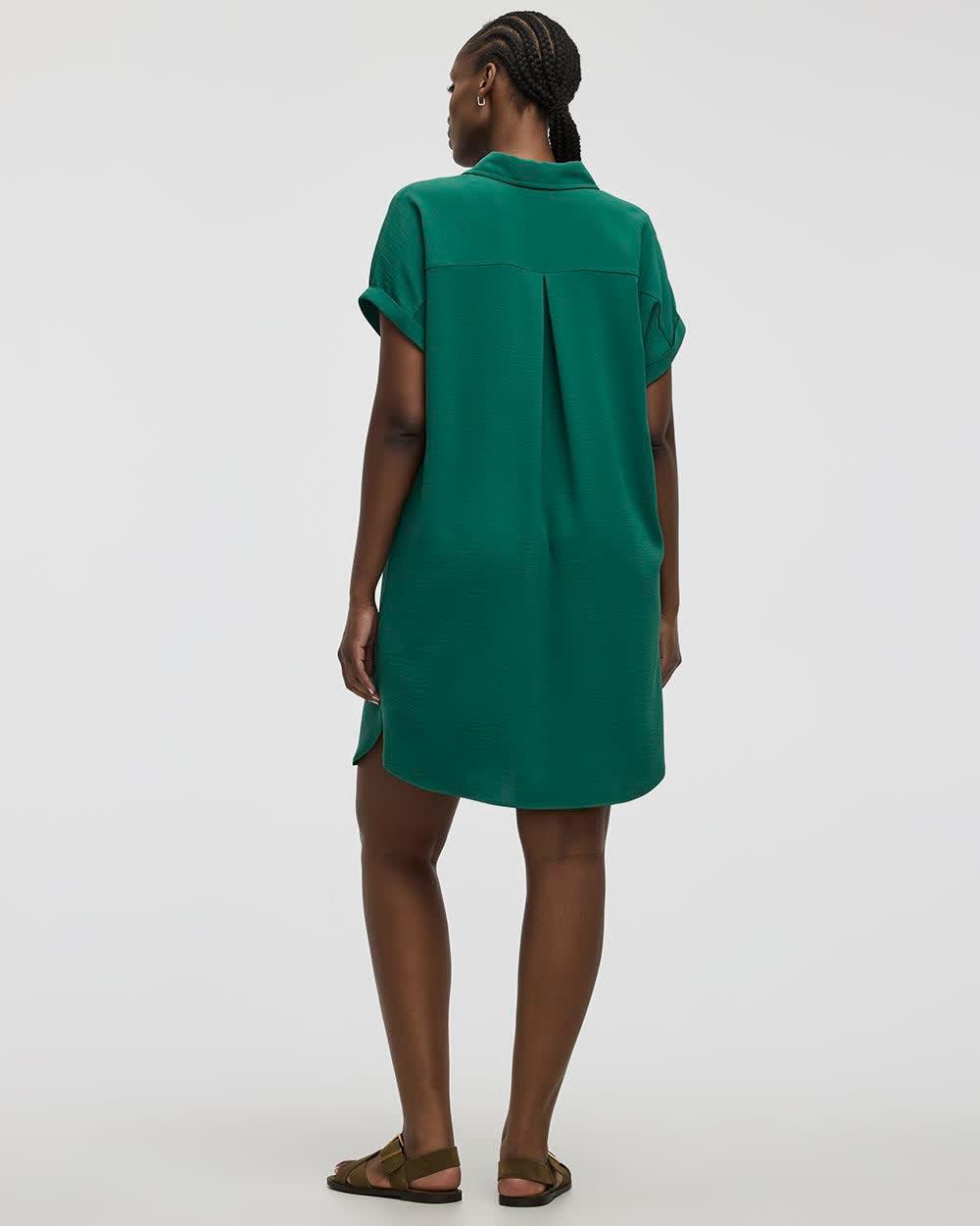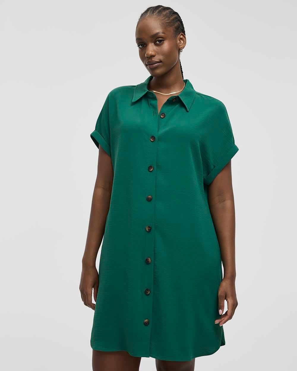 Short-Sleeve Buttoned-Down Dress with Shirt Collar