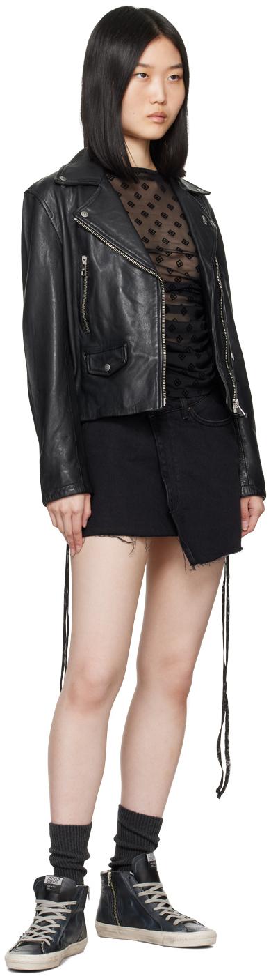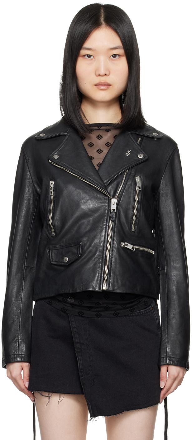 Grained lambskin jacket. · Press-stud fastenings at spread collar · Offset zip closure · Zip pockets · Flap pocket at front · Zip vent at cuffs · Logo hardware at back hem · Welt pockets at interior · Full crepe lining · Logo-engraved silver-tone hardware Supplier color: Black