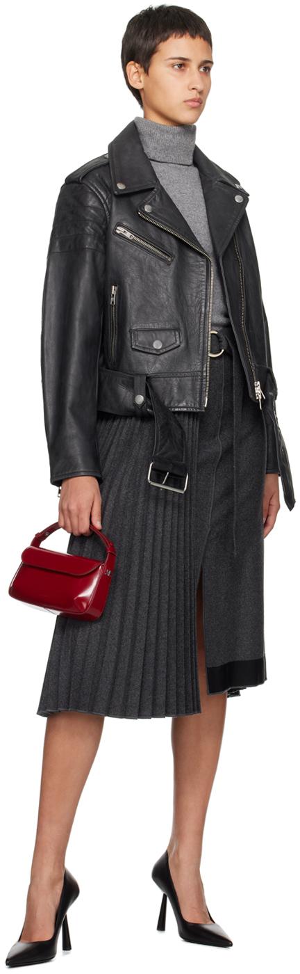 Grained leather jacket. Quilted detailing throughout. · Notched lapel · Two-way zip closure · Zip pockets · Press-stud belt loops at hem · Detachable pin-buckle belt · Press-stud epaulets · Zip expansion panel at cuffs · Zip pocket at interior · Full twill lining Supplier color: Black
