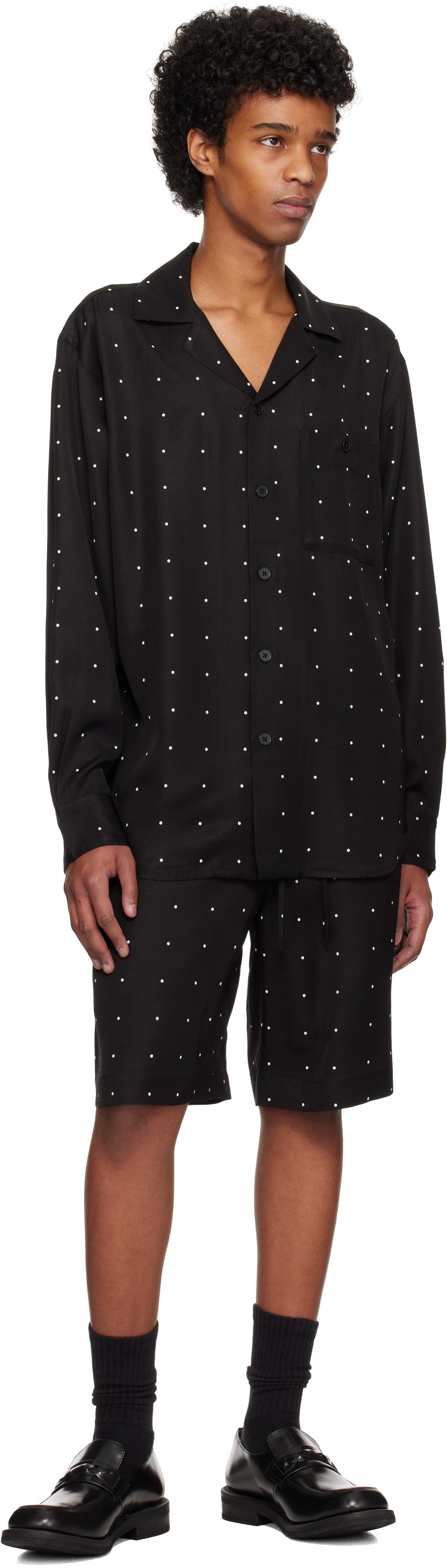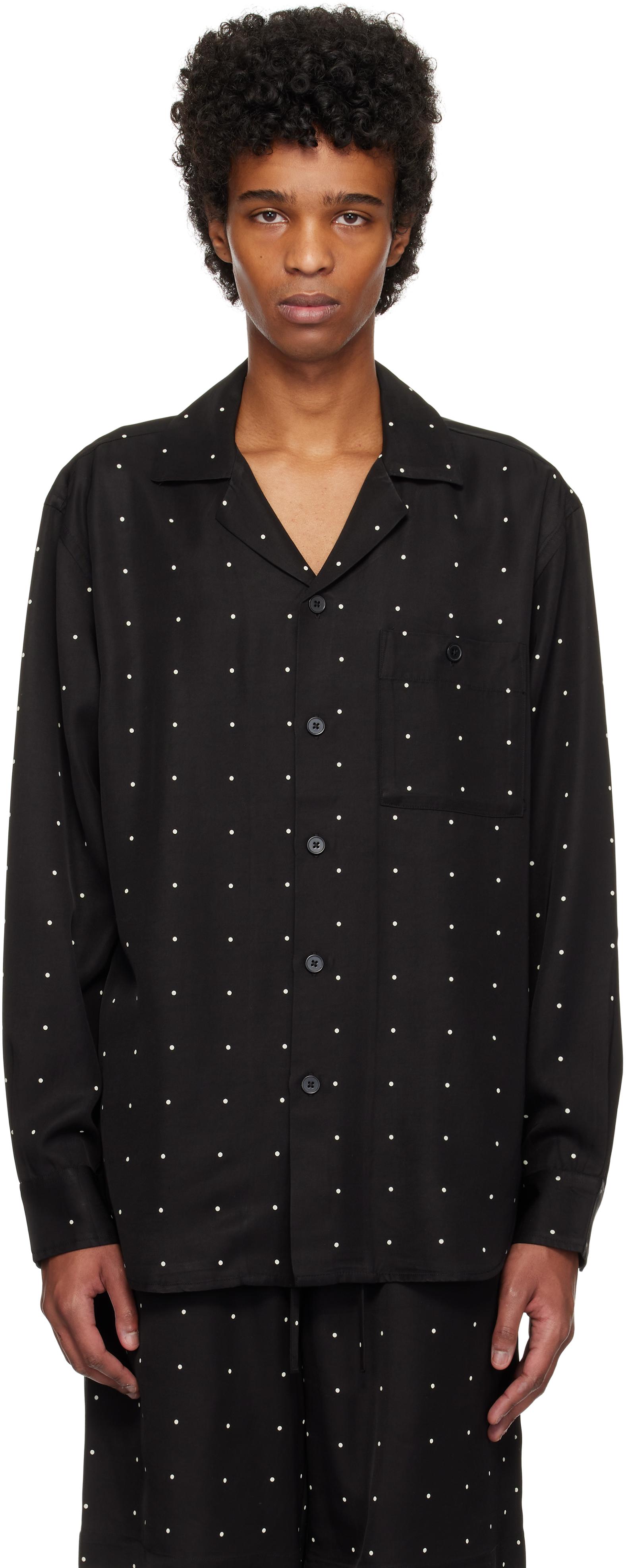 Viscose- and lyocell-blend twill shirt. Polka-dot pattern printed throughout. · Open spread collar · Button closure · Patch pocket at chest · Shirttail hem · Dropped shoulders · Pleated single-button barrel cuffs Supplier color: Black/Cream dot