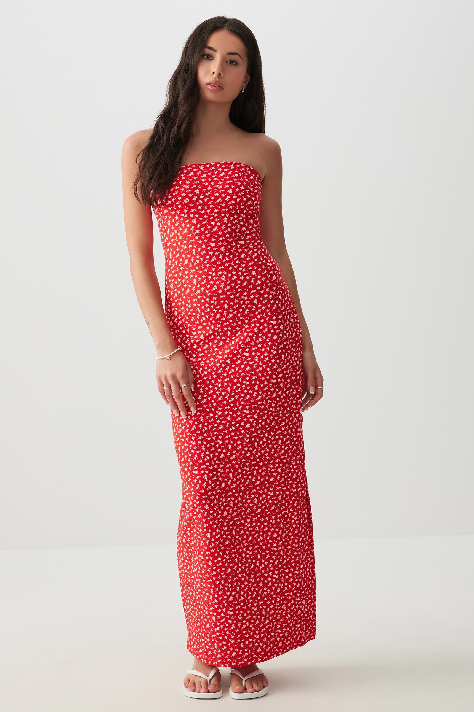Ardene Maxi Tube Dress with Slit in Red