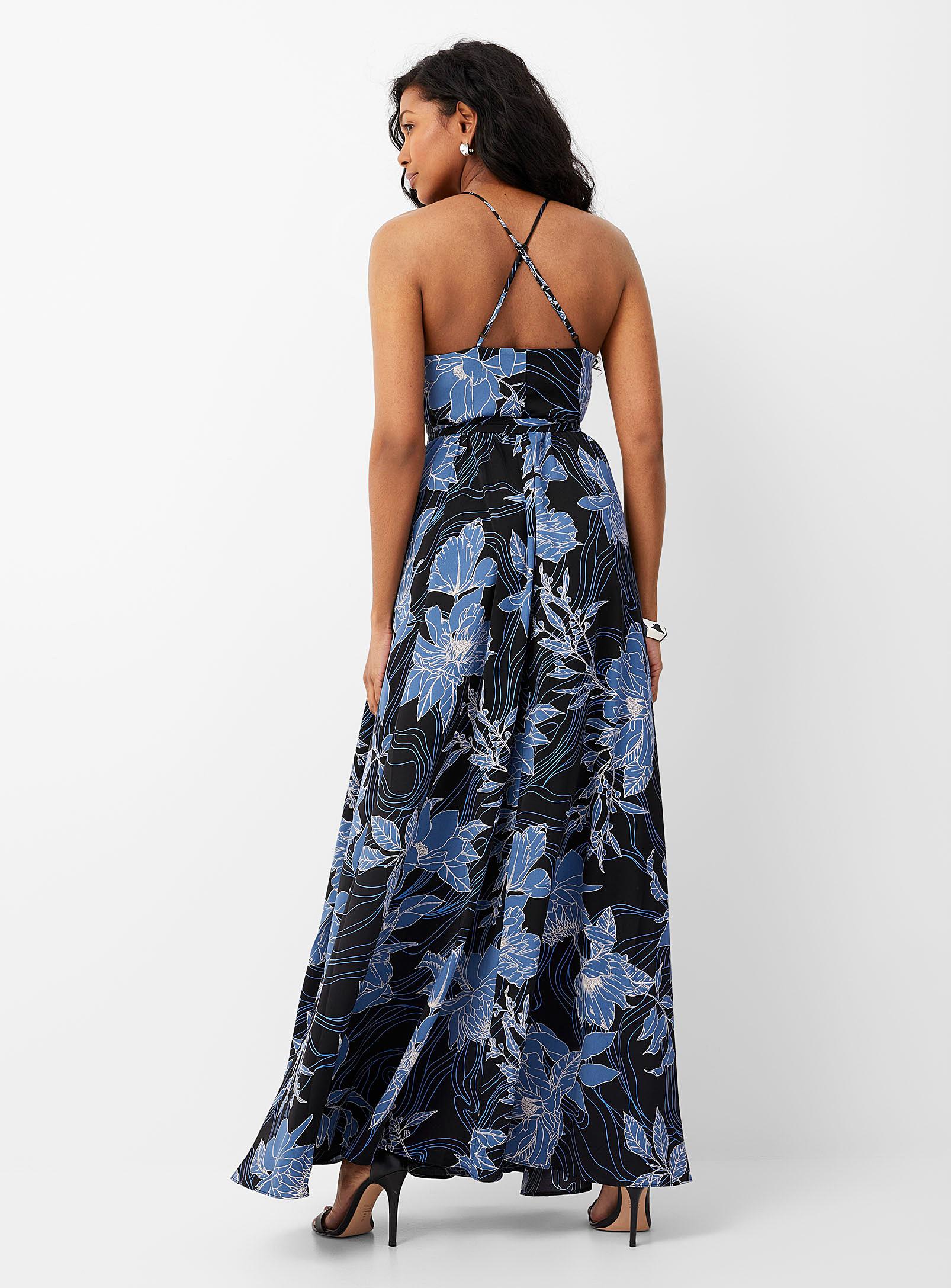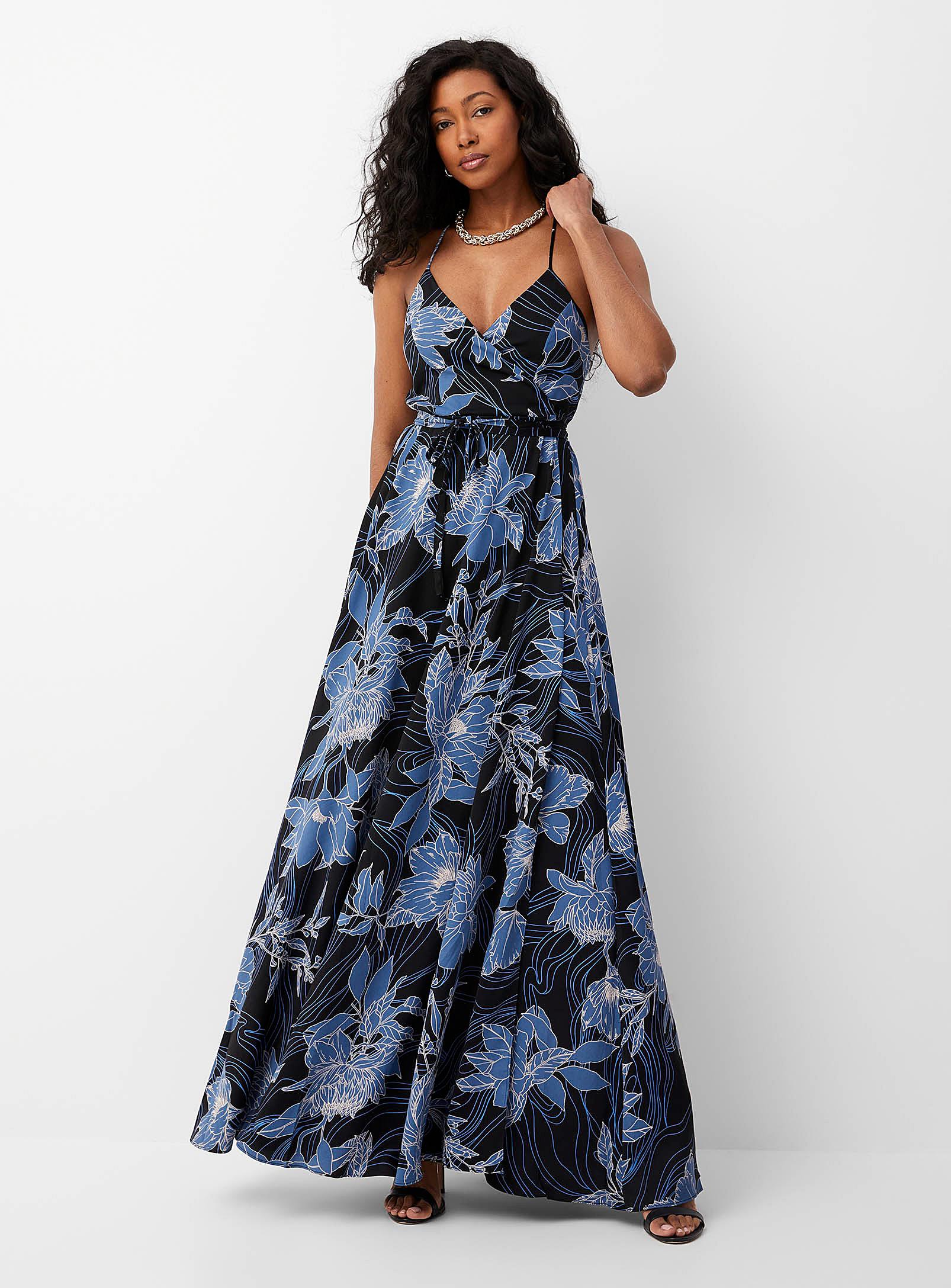 Contemporaine - Blue paradise maxi wraparound dress Contemporaine Fabric Flowy and silky fabric Silky lining in the bodice Style Empire silhouette that is cinched under the bust and follows an A-line to the hem Wrap style Maxi length Details Adjustable thin straps criss-crossed at the back Attached tie belt at the side The size of the item pictured is small Length: 51.25" (130.0 cm), from the top of the shoulder