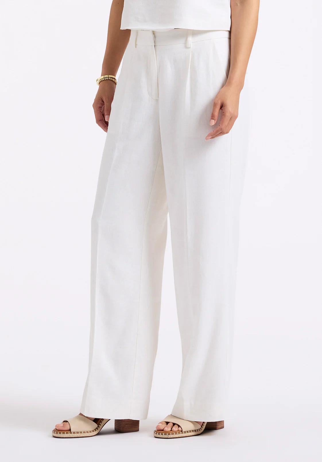 Elevate your everyday style with these sophisticated wide-leg pants Adelina. Featuring a high-waisted design with a structured waistband and subtle pleats, these pants offer a sleek and polished look. Crafted from lightweight a linen blend, they ensure breathability and comfort throughout the day. Ideal for pairing with a tucked-in blouse or our Coraline vest, these versatile pants can transition seamlessly from the office to a casual outing. Complete your look with heels or sandals for effortless elegance.