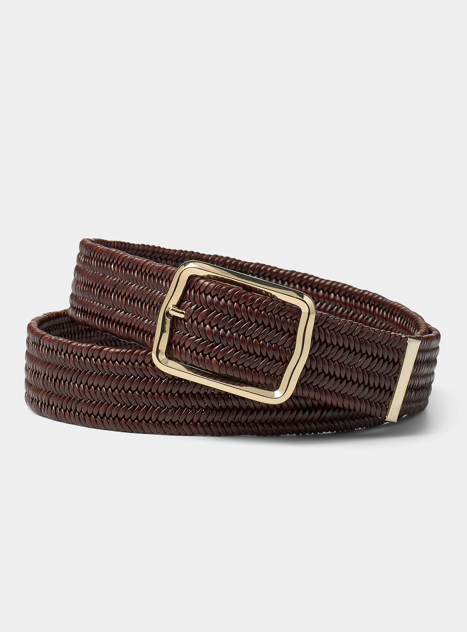 HERBERT Frère Soeur - Kemet wide braided leather belt HERBERT Frère Soeur HERBERT Frère Soeur at Simons Recycled genuine leather blend Metallic rectangular buckle Made in France Signature dust bag included Width: 33 mm