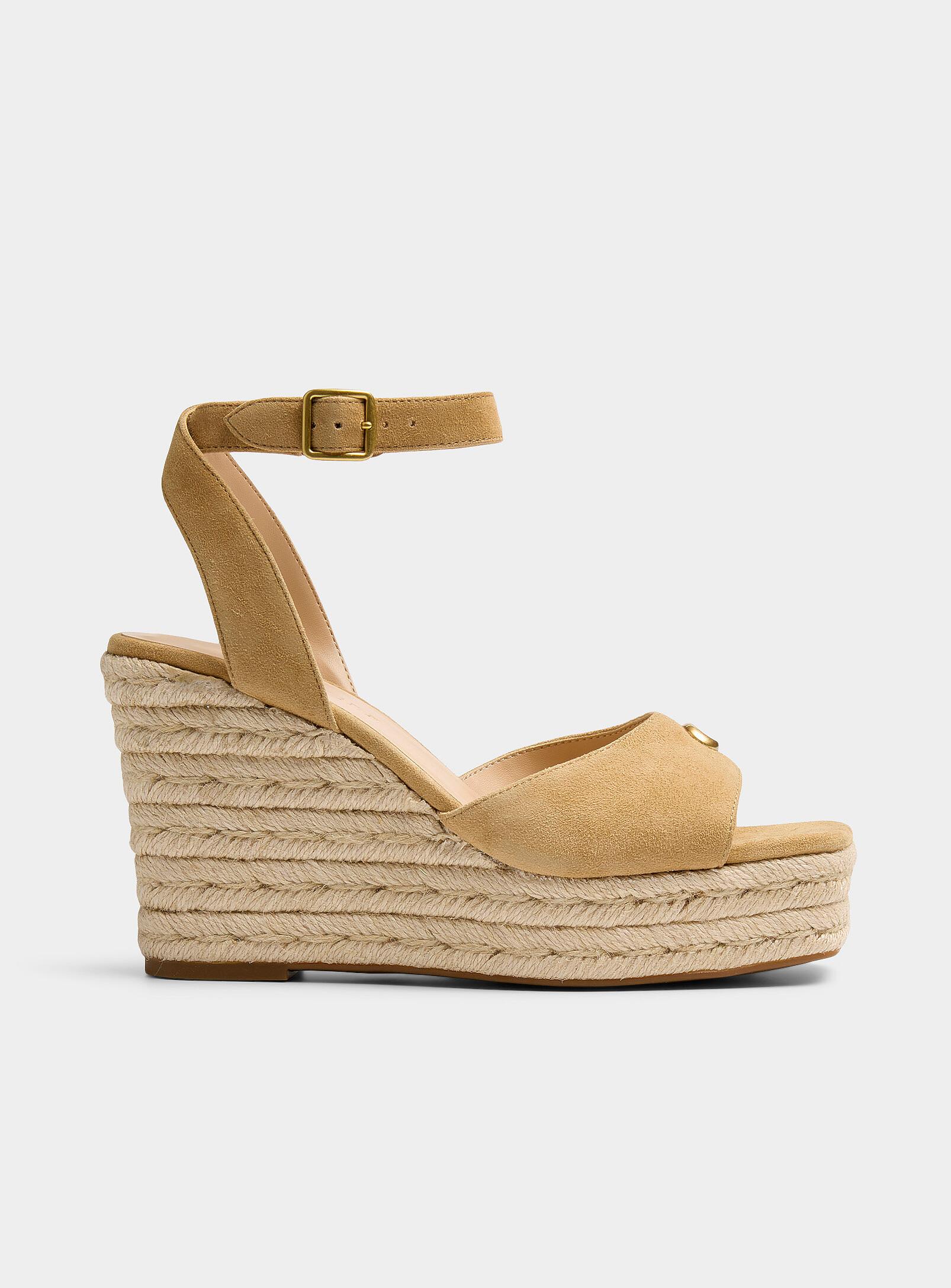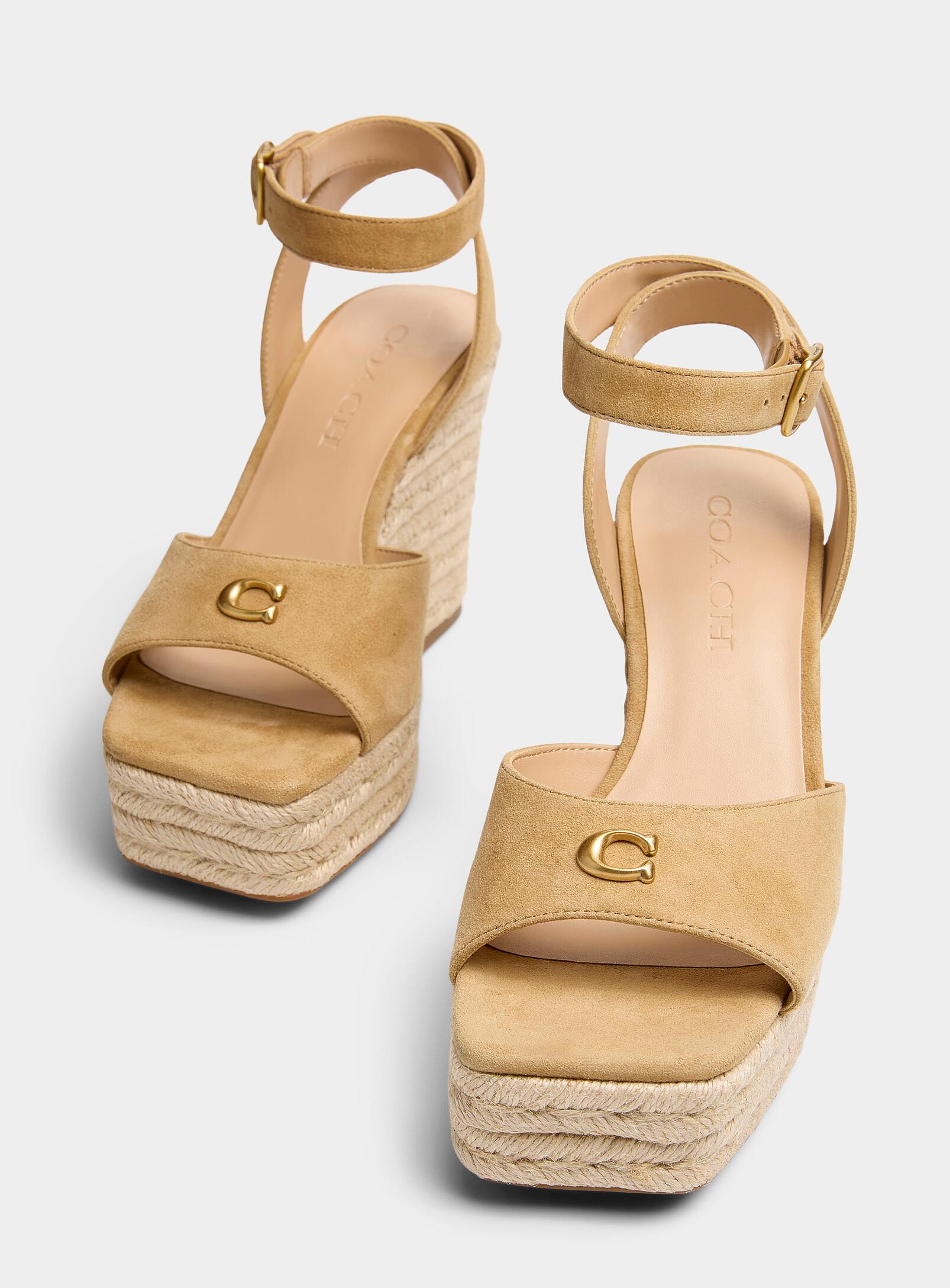 Chaussures > Femme > Sandalesbr>Coach - La sandale compensée brides suède Femme Coachbr>ul>li>Coach chez Simons/li>li>Brides en suède véritable/li>li>Ajustable à la cheville avec boucle à ardillon/li>li>Quincaillerie métallique dorée/li>li>Assise plantaire coussinée/li>li>Plateforme en corde tressée/li>li>Semelle extérieure en caoutchouc/li>/ul>