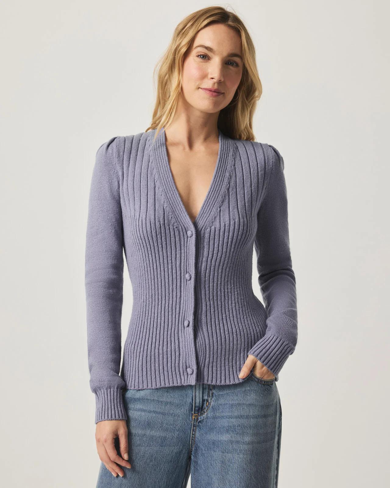 It's all in the details when it comes to our Jolie Sweater Cardigan. Its fitted bodice is topped with charming pleated shoulders and a unique ribbed design. A V-neckline and covered buttons give it all the polish it needs no matter how you wear it. Cotton blend V-neck Pleated shoulders Ribbed design Covered buttons