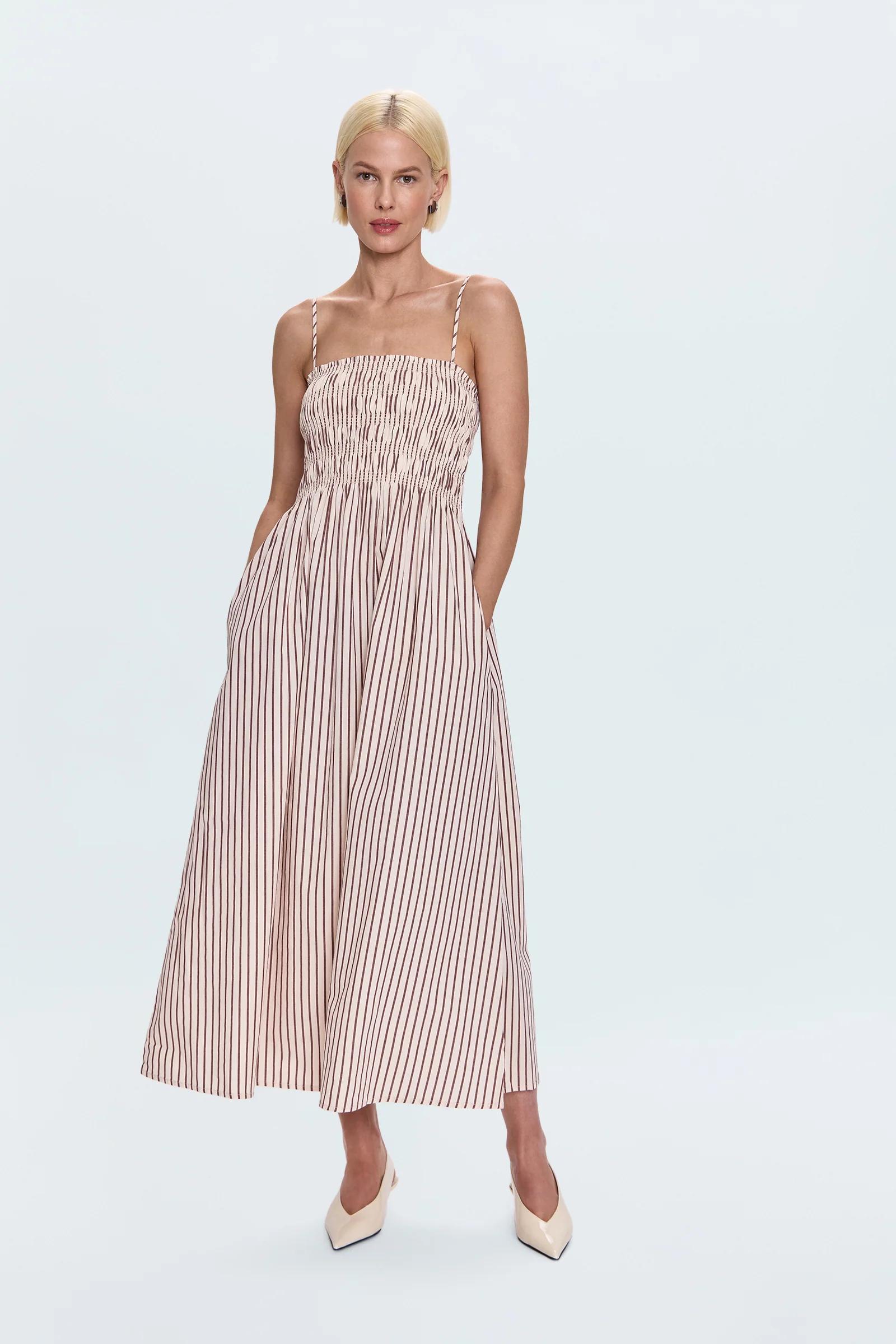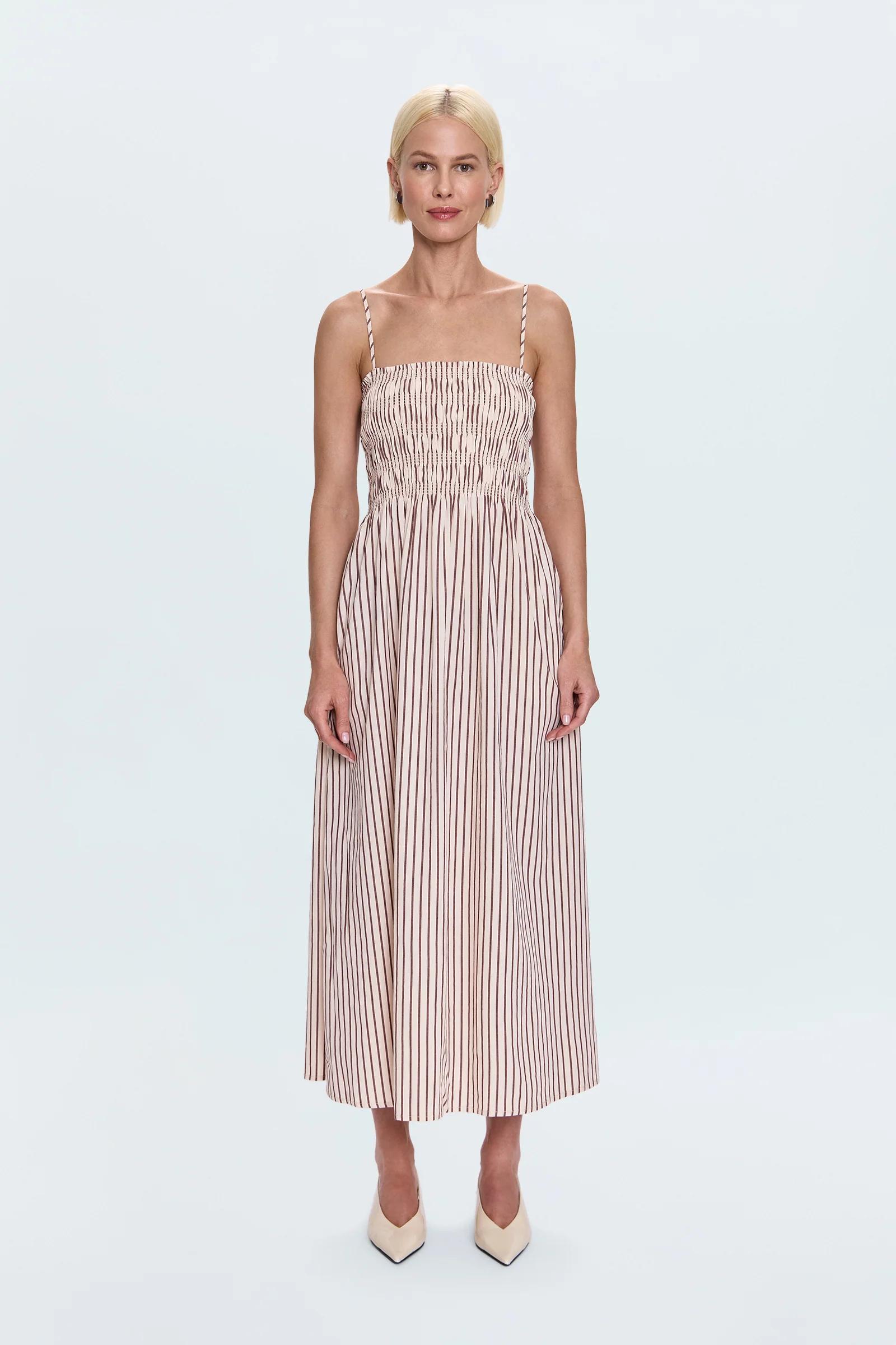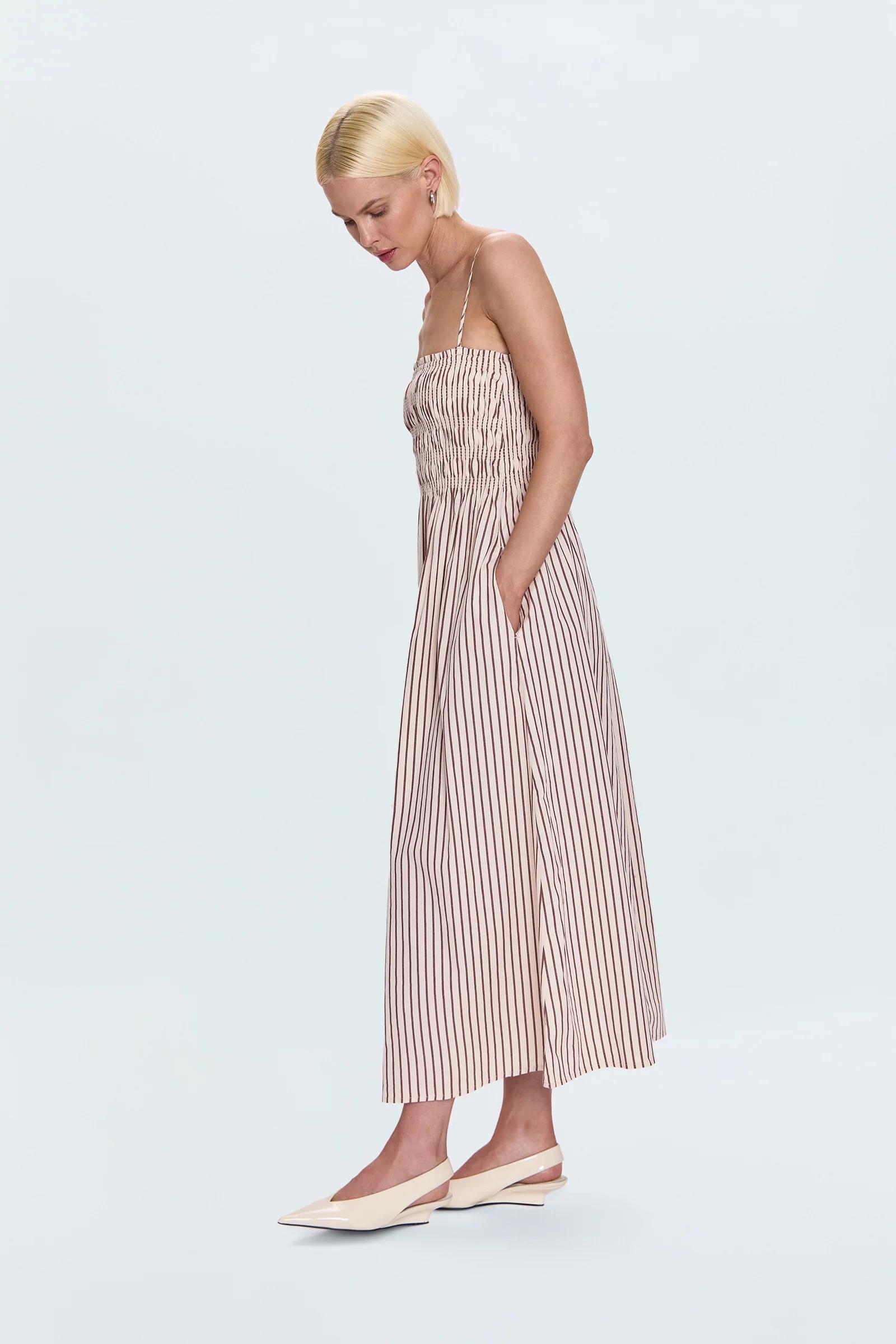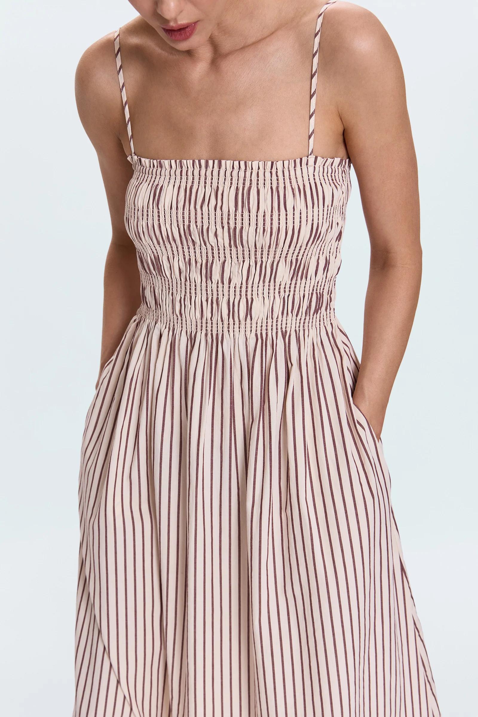 Bianca Shirred Bodice Dress - Tiramisu Stripe