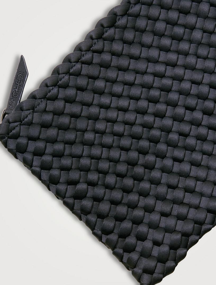 The very first NAGHEDI design and a best-selling classic. Handwoven from strips of neoprene, the St. Barths Tote is durable and timeless, made to be worn season after season. Matching woven zippered pouch included. Handles fit over the shoulder and are intentionally designed slightly shorter; they will gently stretch to the perfect length with wear.