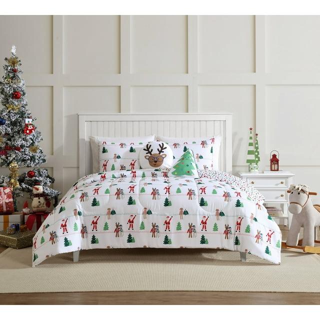 Embrace the holiday spirit with our printed Comforter Sets! Designed to infuse your bedroom with the magic of the Christmas season. Coordinated printed reverse offers additional value and flexibility in how you decorate your room. Made from premium microfiber it gives you the extra comfort to sleep through the night. Set includes one comforter, two pillow shams (one pillowsham for Twin size) and two décor cushions that will add a cheerful and festive accent to your bed or any cozy corner of your room. Made with soft, durable and wrinkle-resistant Microfiber fabric. Ultra Soft • Extra Durable • Machine Washable • Reversible