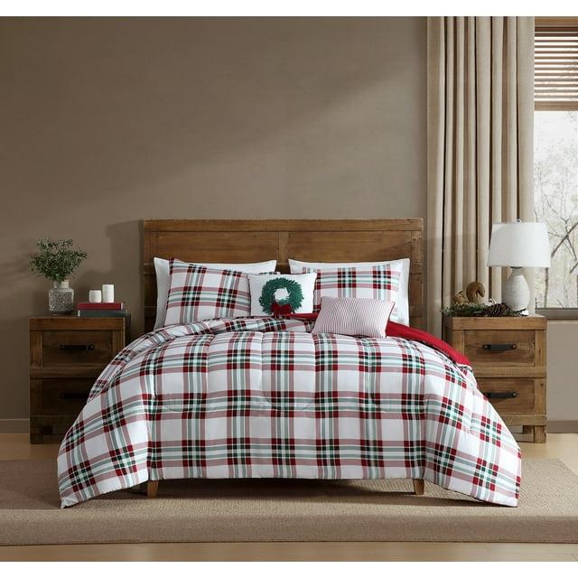 Holiday Time 5 pieces Comforter Set, Full/Queen Bedding Set Holiday Plaid