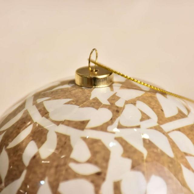 Holiday Time 4 pack Christmas Warm Wishes Botanical Print Ball Ornament, Brown