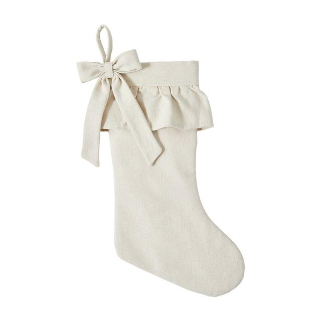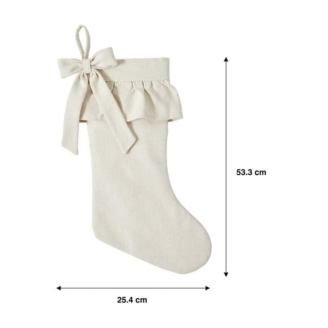 Fraiche Christmas ruffle stocking,natural linen material,the cuff is ruffle edge to enhance the decoration.with a hanging loop to hang on the fireplace mantle,the Christmas tree or other places for decoration.traditional and Classic style,use for Christmas decoration.bring on the Christmas cheer with the stocking that makes a wonderful winter addition to your Holiday decoration!