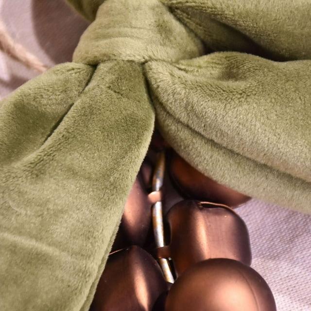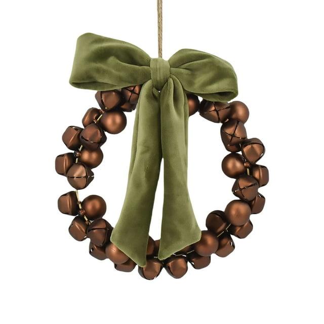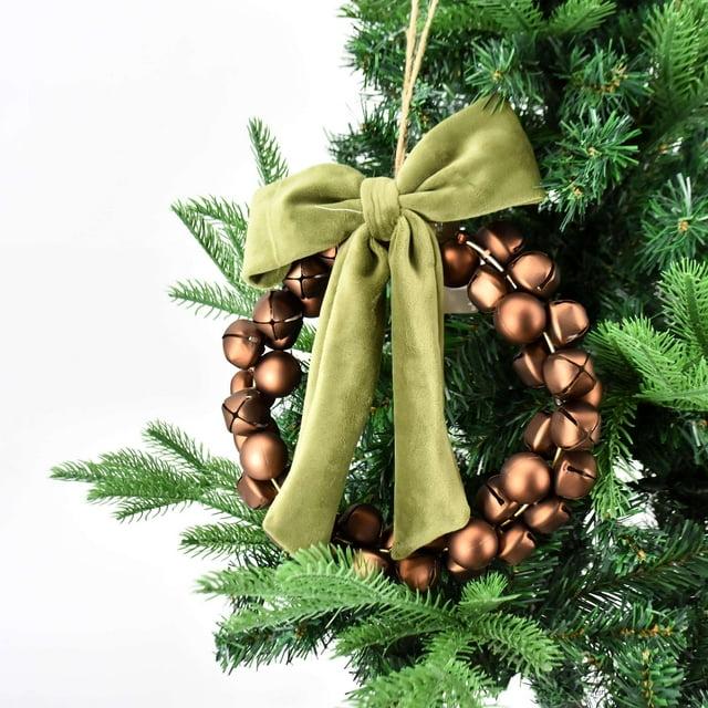Add festive charm to your holiday décor with the Holiday Time 9.5" Gold Christmas Warm Wishes Iron Bell Wreath . Featuring a stunning ring of bronze-toned jingle bells accented by an elegant green velvet bow, this wreath offers both a visual and audible holiday delight. Measuring 9.5" wide, 2.4" deep, and 9.5" high, it’s the perfect size for doors, walls, or mantel displays. Its classic holiday design adds a joyful touch to any setting.