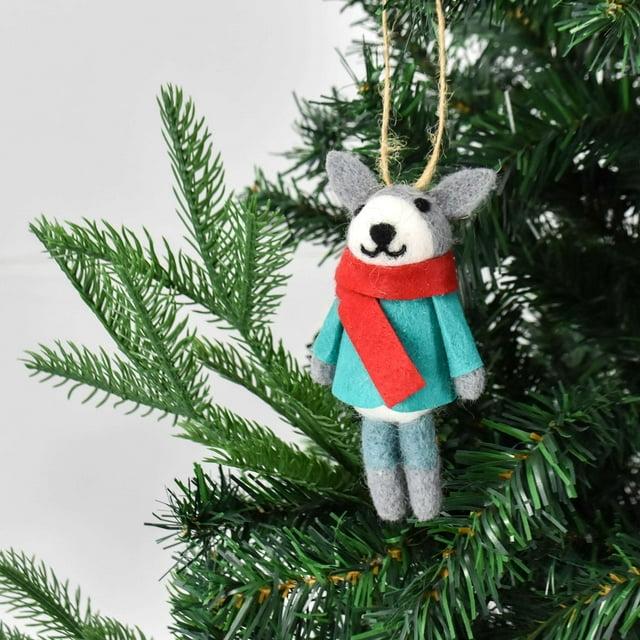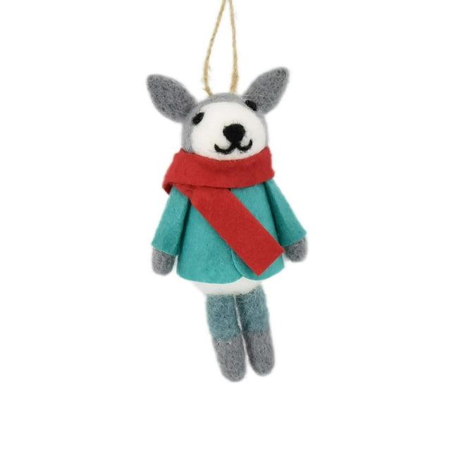 Bring festive charm to your holiday display with the Holiday Time 1 Count Christmas Green Felt Mice with Scarf Ornament. This adorable felt ornament features a cheerful mouse in a teal coat and a bright red scarf, adding a pop of color and personality to your Christmas tree. The soft, handcrafted look of the 5.25" mice creates a cozy, woodland-inspired feel that fits perfectly in rustic or whimsical holiday décor. Lightweight and easy to hang, it's a delightful addition to any ornament collection and makes a thoughtful stocking stuffer or small gift.