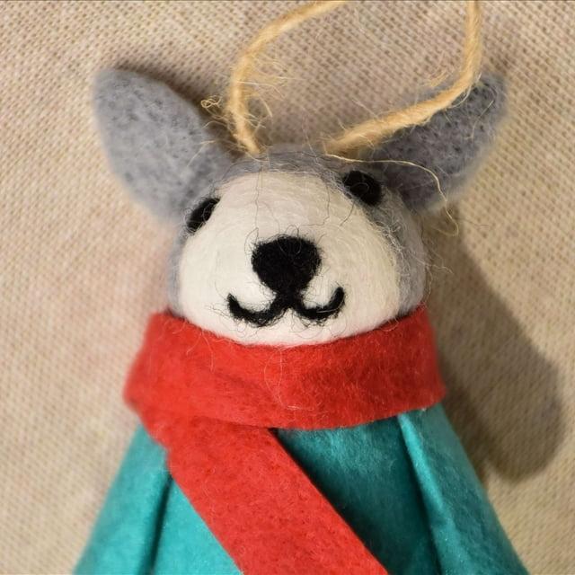 Holiday Time 1 Count Christmas Felt Mice with Scarf Ornament, Green
