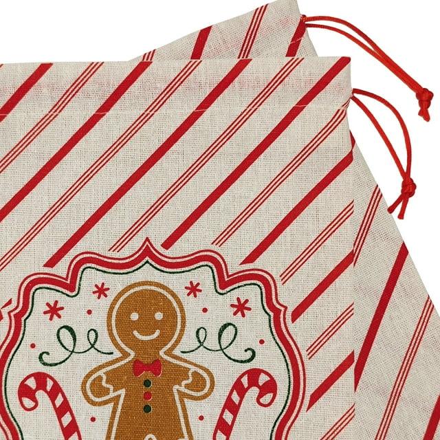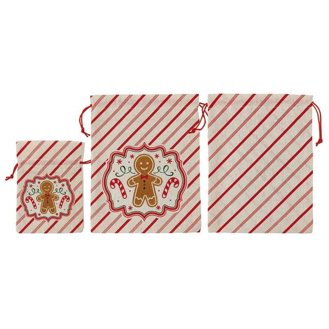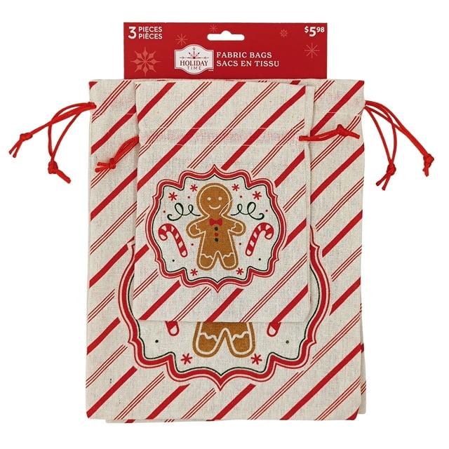 Holiday Time 3 Count Multi Color Fabric Bags with Drawstring 5" by 7" and 8" by 10" for Xmas Package Storage, 3CT CANDY