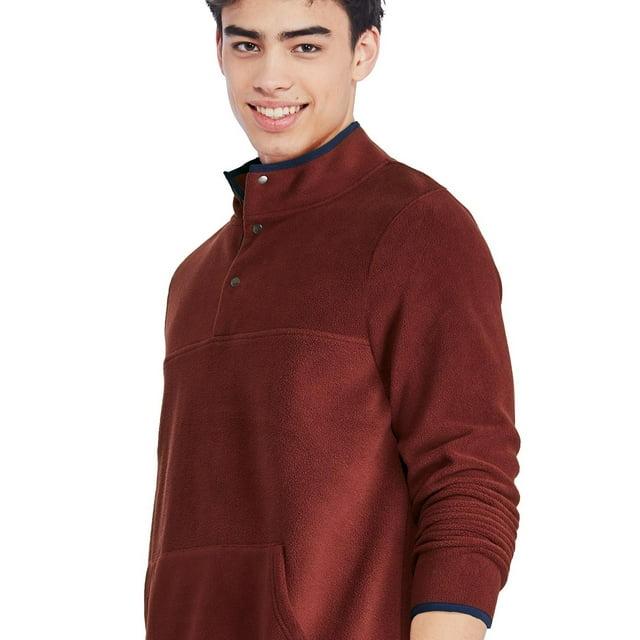 Achieve casual comfort with George men’s fleece popover. Made of soft micro polar fleece, it delivers lightweight warmth without the bulk, making it a go-to for cool weather. The popover is styled with a mock neckline for extra coverage, long sleeves, a 3 snap-button placket for a customizable design, a kangaroo pocket, and a straight hem for a clean look. Complete your outfit by pairing it with jeans or joggers.