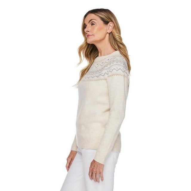 Add festive flair to your look with Iyla women's Christmas sweater. Made of a soft knit material, it'll keep you warm and stylish during any holiday gathering. The sweater features a classic crew neckline, long raglan sleeves, and a pattern on the yoke and sleeves. Finished with ribbed details on the neckline, cuffs, and hem, this sweater is the perfect addition to your collection. Pair it with leggings and boots for a cozy aesthetic.