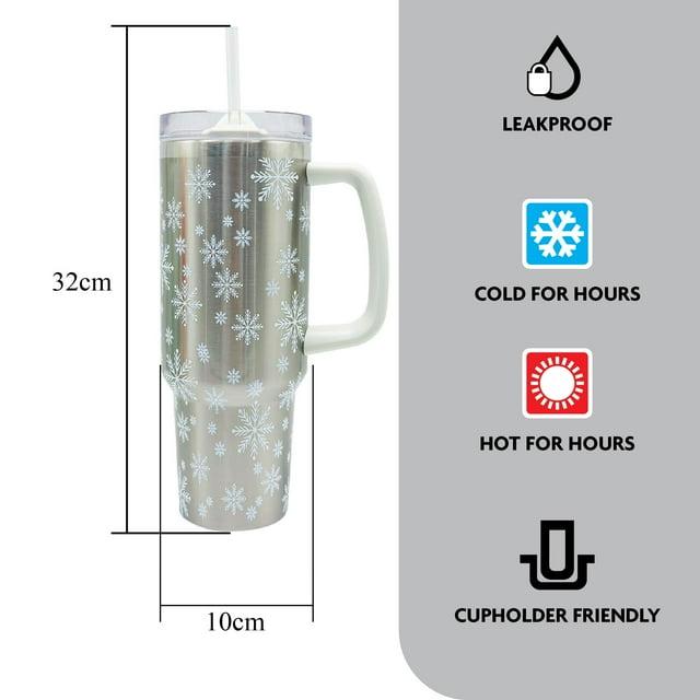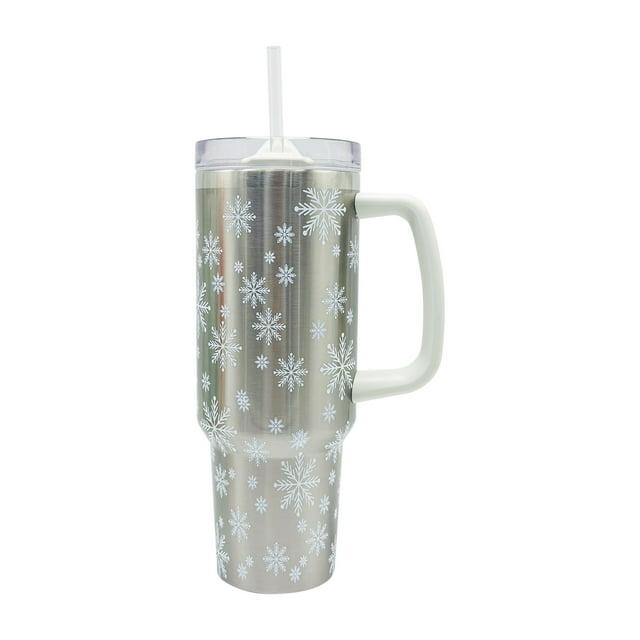 Holiday Time 40oz STAINLESS STEEL TUMBLER WITH STRAW SNOWFLAKE