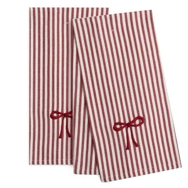 Bring holiday cheer to your kitchen with the Holiday Time 2-Pack Striped Kitchen Towels. These 16"x26" towels feature festive embroidery and are made from 100% reclaimed cotton, offering both style and sustainability. With a "Glad Tidings" theme, they're perfect for holiday cooking, cleaning, and entertaining. A durable, eco-friendly addition to your seasonal kitchen essentials!