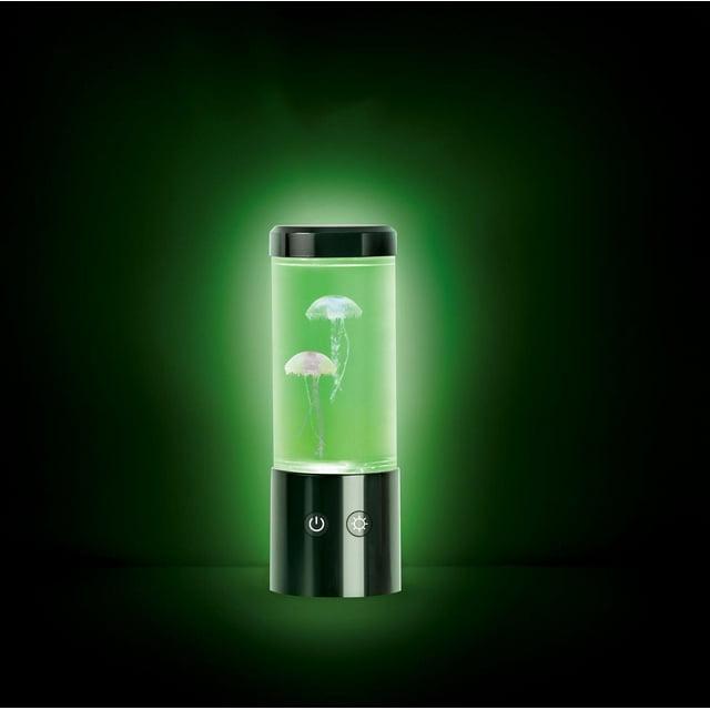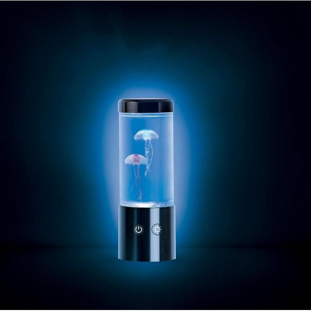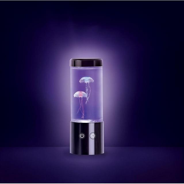 Immerse yourself in the mesmerizing world of the Merkury Innovations Jellyfish Lamp. Choose your favorite LED color or select the color changing mode for an amazing light show. Features two silicone jellyfish that float and swim in the tank for a realistic effect. USB powered, this 9 inch lamp creates a captivating visual spectacle and adds a touch of enchantment to any space.