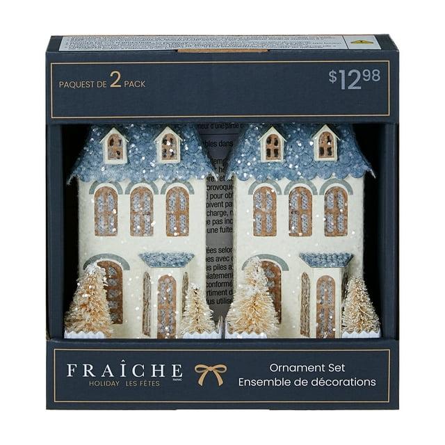 Fraiche Light-up Paper House Ornaments 2-Pack
