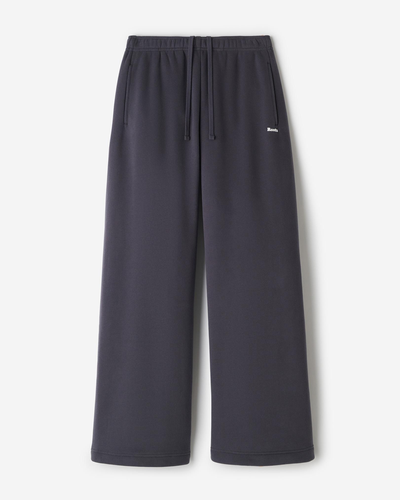 Float away in cloud nine softness. Our Cloud Wide Leg Sweatpant is so plush and cozy you'll want to wear them all-day every day. Relaxed fit Mid rise Elasticated waistband with drawstring On seam side pockets Branding at left hip ABOUT 80% organic cotton, 20% recycled polyester fleece SIZE & FIT The model is wearing a size small Model Measurements: Height: 5'9 ; bust: 34B"; waist: 25 ; hips: 35 Inseams: 30 All sizes RELAXED FIT The relaxed fit falls away from the body for a more casual look and feel. LOOK AFTER ME Machine wash cold (30°C), gentle/delicate cycle Do not bleach Tumble dry low Warm iron Do not dry clean Wash inside out Iron inside out Wash with like colours Do not iron decoration Roots Cloud Wide Leg Sweatpant in Graphite Grey