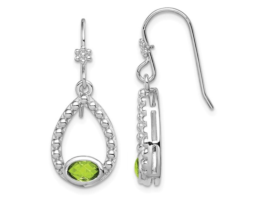 These beautiful dangle earrings are created from sleek sterling silver and crafted into a unique drop design with green peridots at the bottom completing the look. These dangle earrings featuring the birthstone of the month of August weighs 3.90 grams and are 1 and 1/4 inch in length.