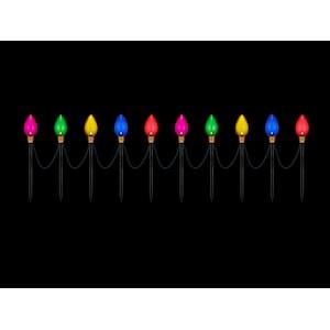 Embrace the holiday vibe by installing these Home Accents Holiday 12 in. multi-colored giant C9 LED pathway lights (10-Pack). This is a great option for lining your driveway or path to your front door, creating an seasonally-inviting welcome for guests and family. Each of the 10 colorful pathway lights, which are 12 in. high including stake and 1.7 in. wide, adds decorative cheer along a 7.5 ft. lighted length string. These special giant lights can be connected end-to-end with up to 72 sets on one outlet for expansive creativity.