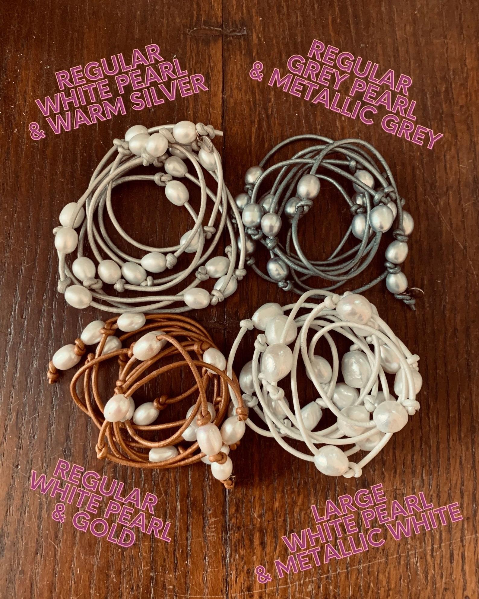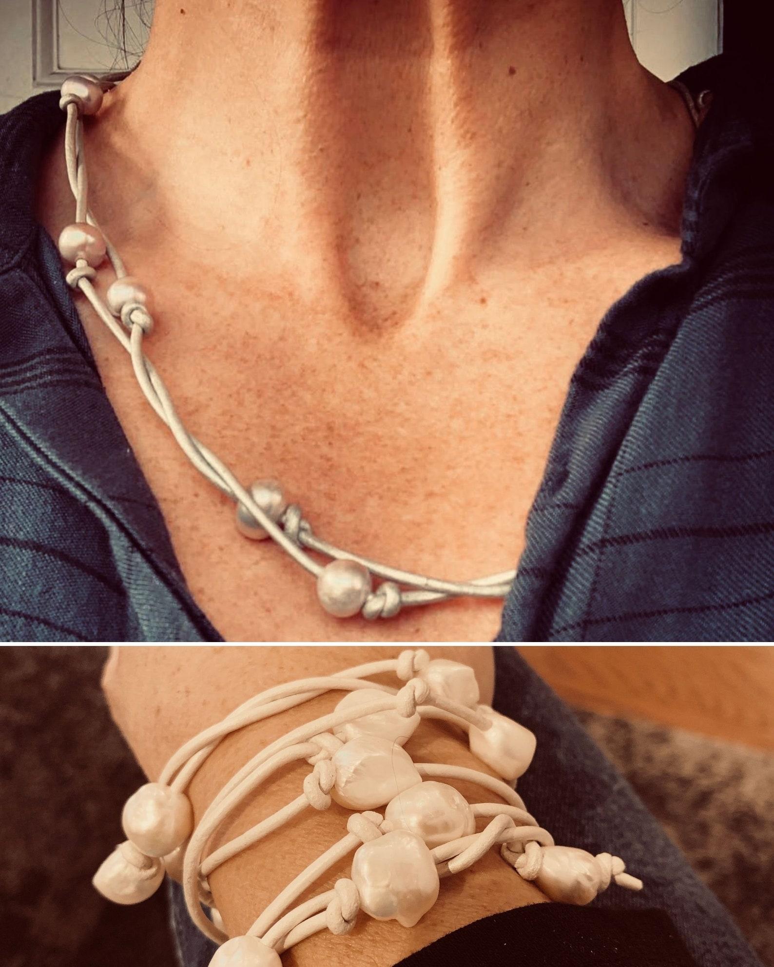 Chunky Metallic Leather and Pearl Rope to Wear as Necklace, Bracelet, Bag Charm, or Choker