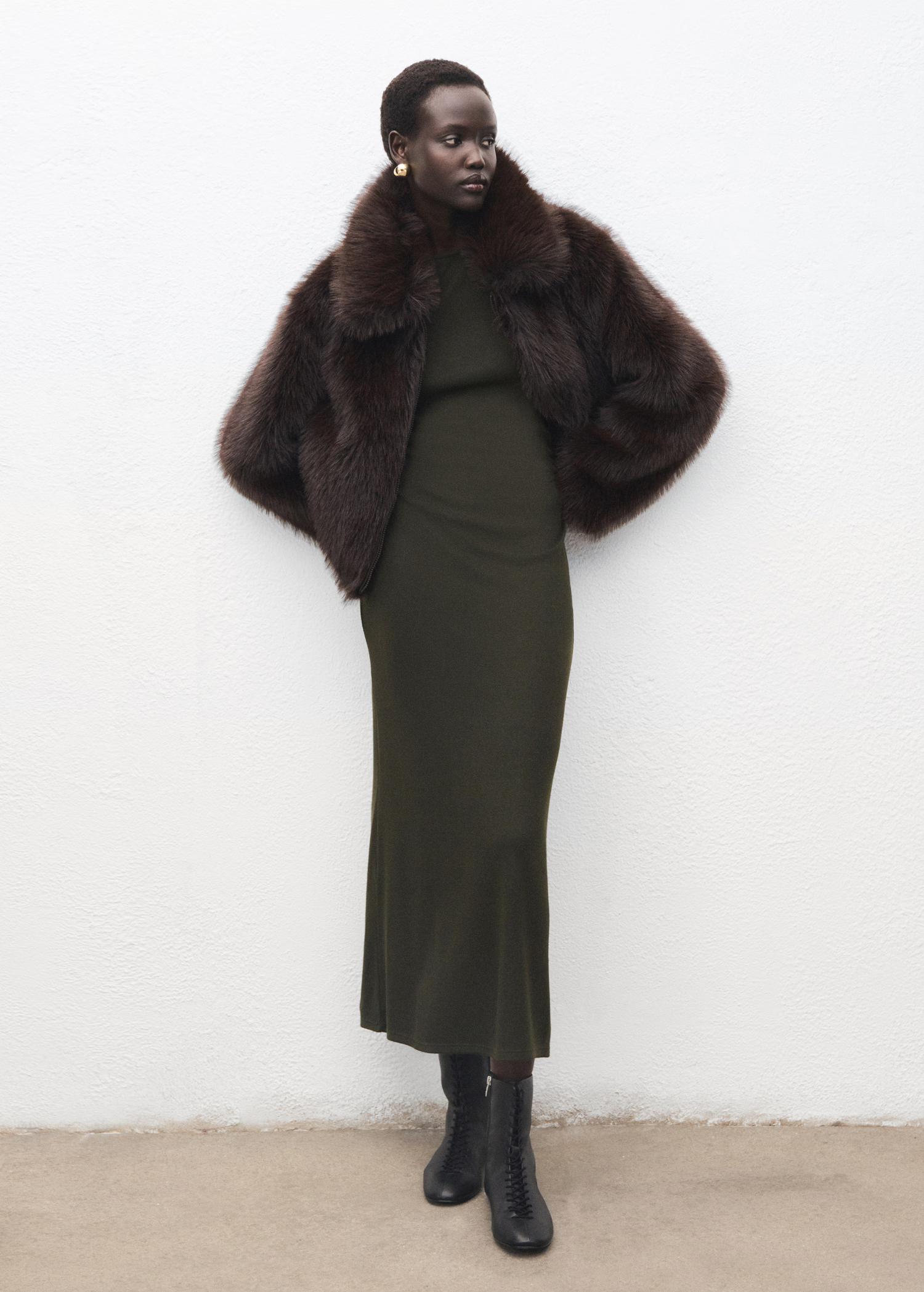Fine-knit elastic fabric. Long design. Fitted design. Round neck. Short sleeves. Side pleats. No Fastening. This garment is part of our casual collection, designed to stylishly accompany you in your day-to-day life.