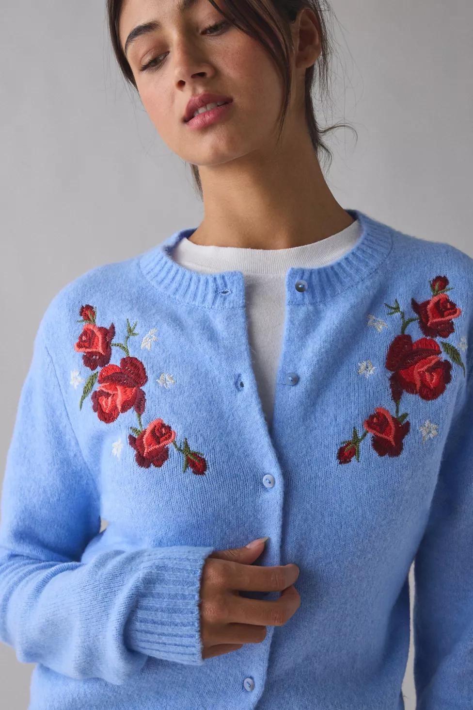 Our best-selling Kimchi Blue Rachel cardigan is made special with floral embroidered details to add a femme touch to any outfit. Cardigan sweater in a slim fit featuring a crew neckline, long sleeves, buttons down the front and ribbed trims throughout. Perfect layered & on its own! Find it only at UO.