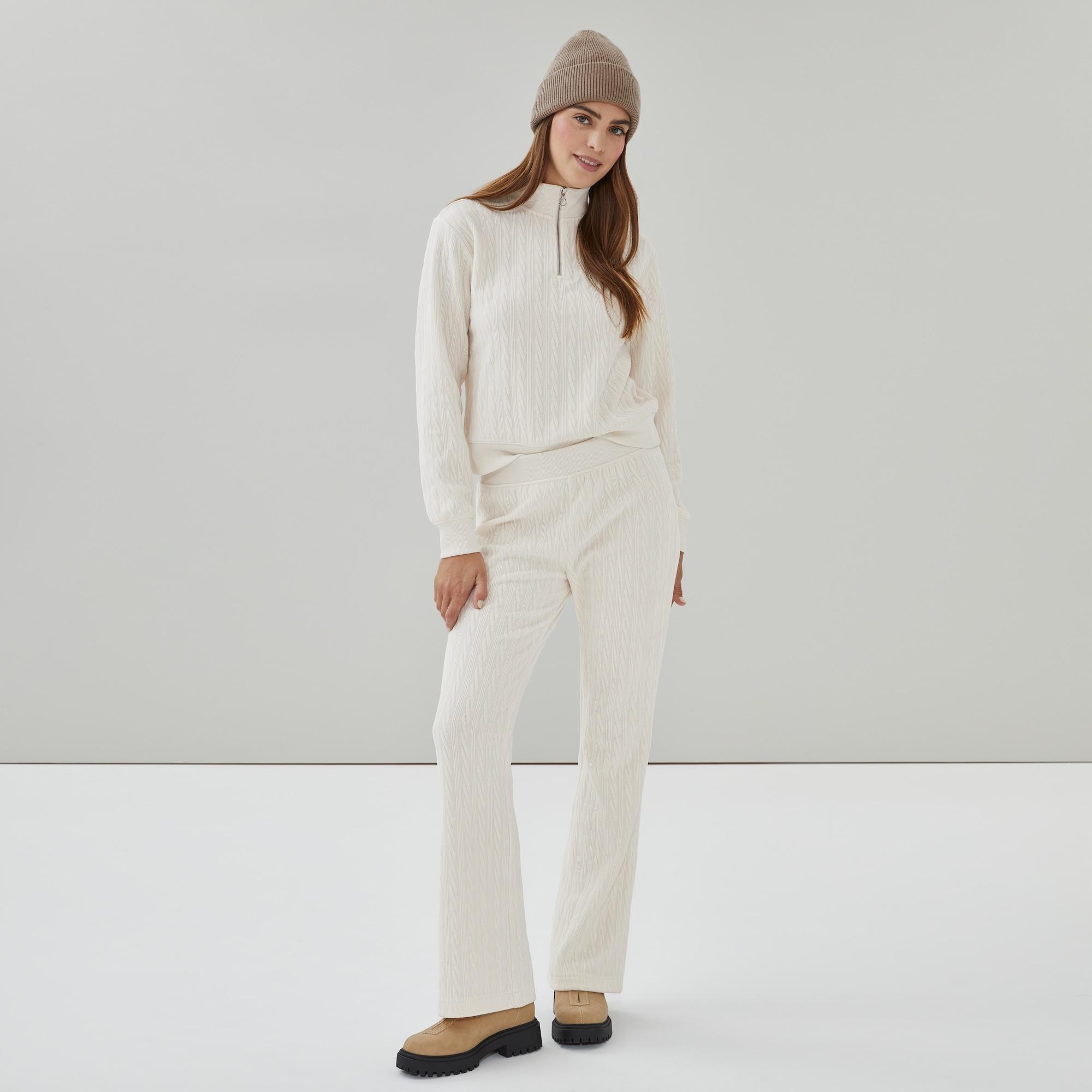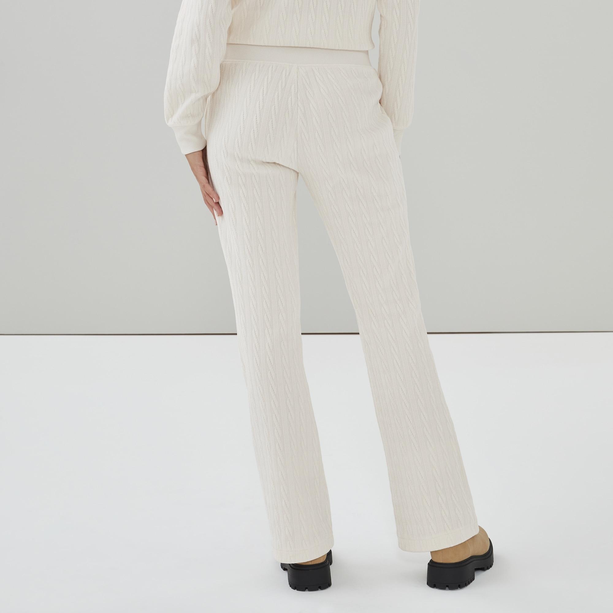 Classic fit, flared finish. These women's textured knit pants are designed with an elastic waist to stay in place. They feature a full length and high rise to define your waist. Complete the look with the matching quarter-zip sweater.