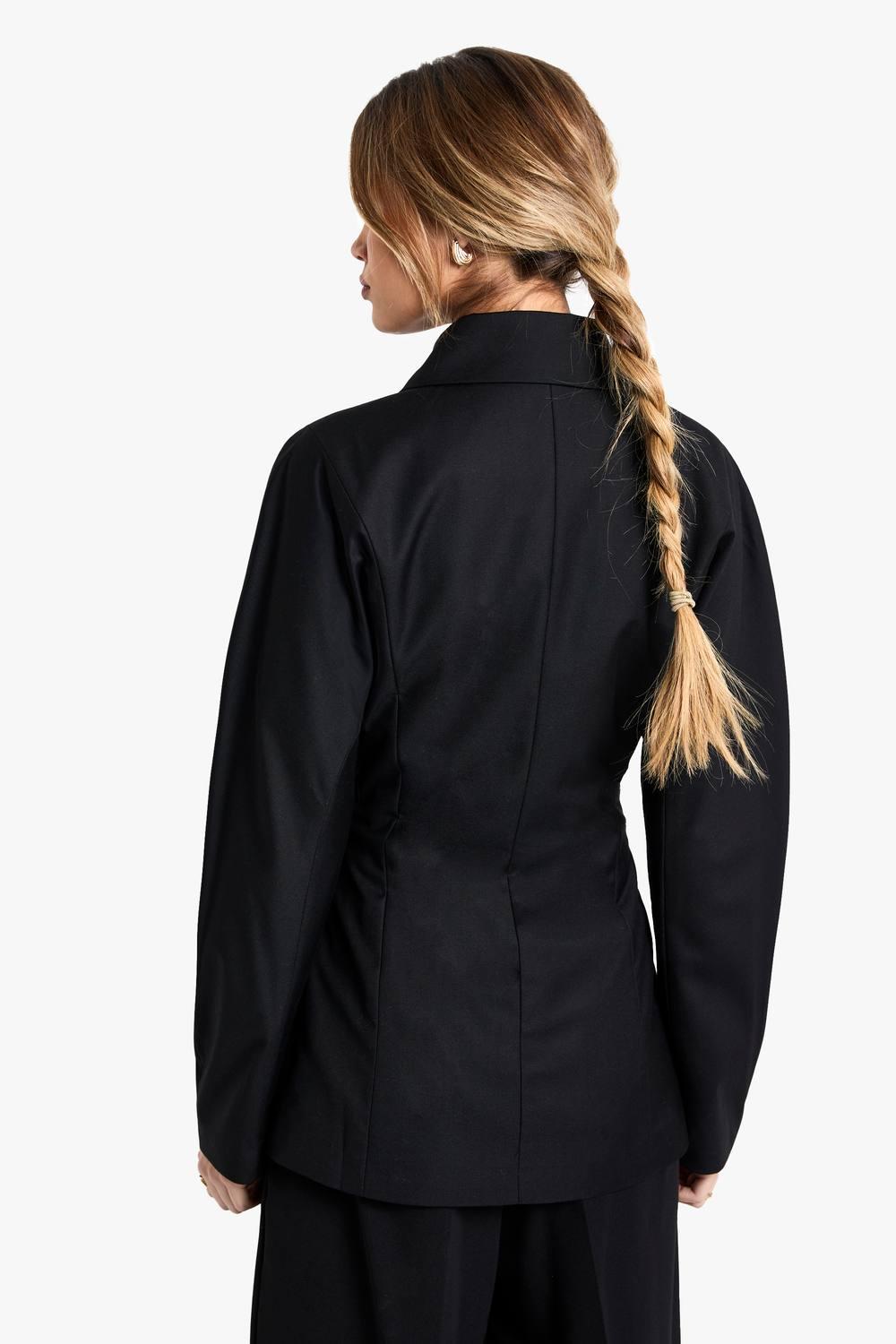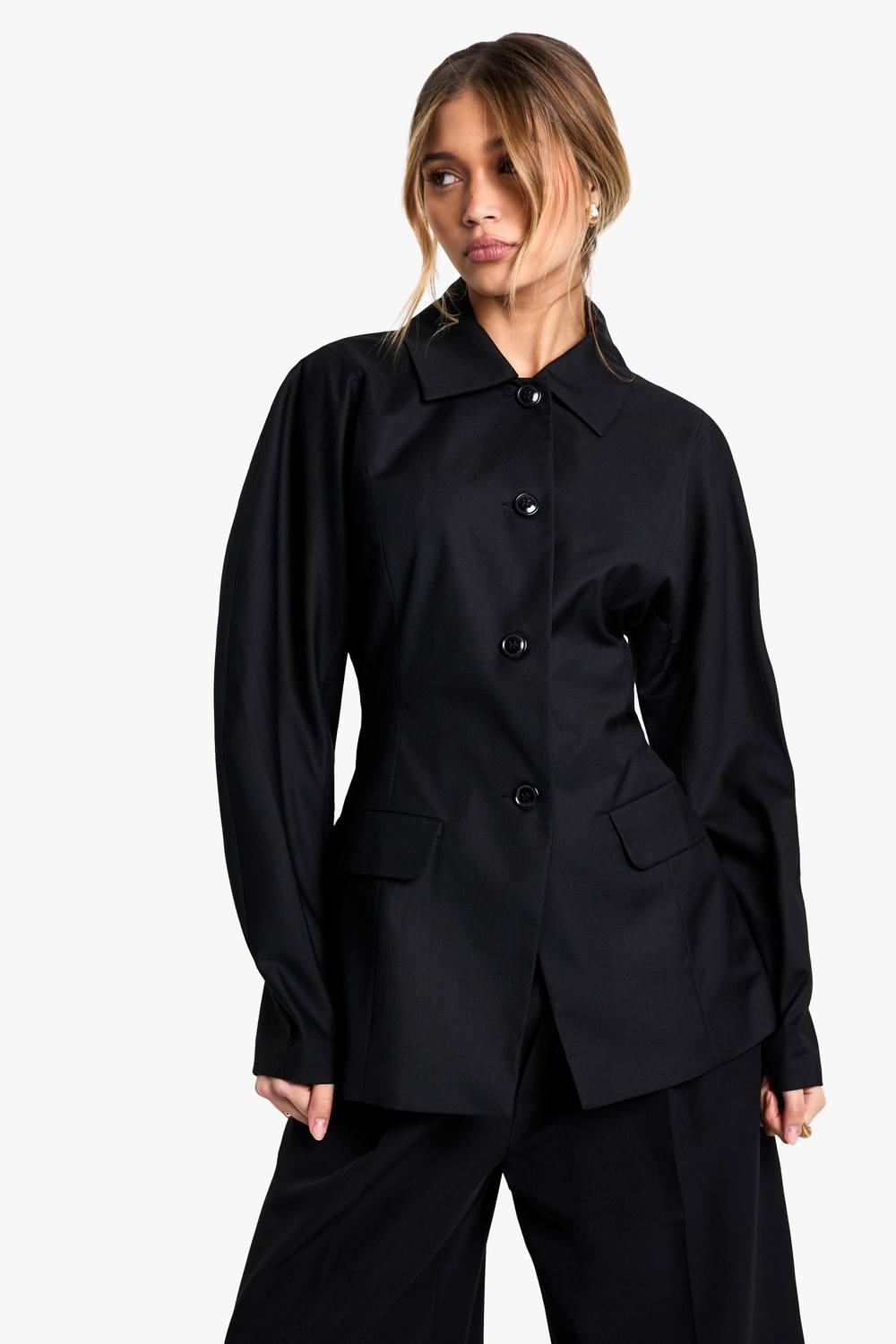 Womens Barrel Sleeve Button Up Fitted Blazer - Black