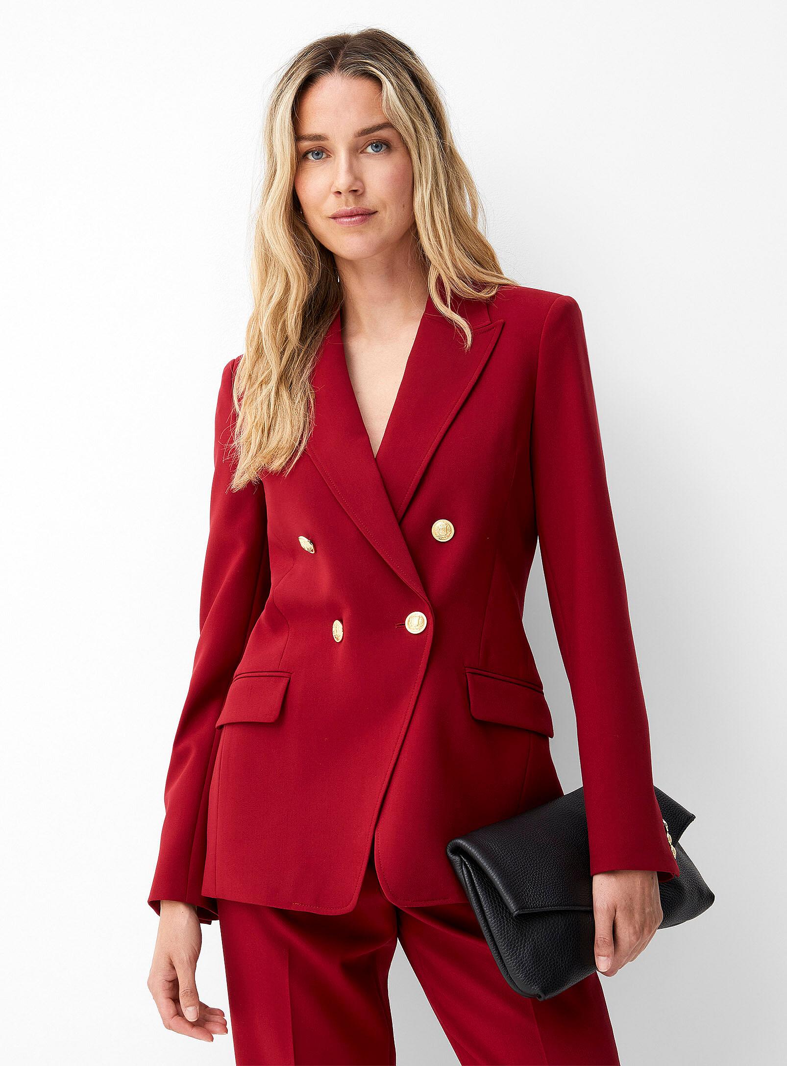 Twill in a polyester blend made from recycled plastic bottles Built-in fine silky lining Thin built-in shoulder pads Regular fit Notch collar Double-breasted fit with crest buttons Flap patch pockets