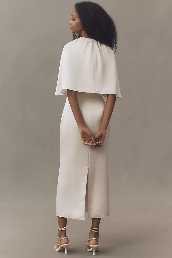 100% polyester Midi length Slim silhouette Cape detail Long sleeves Zipper styling Professionally clean Imported Long-Sleeve Cape Midi Dress by Mare Mare in Ivory, Women's, Size: Medium, Polyester at Anthropologie