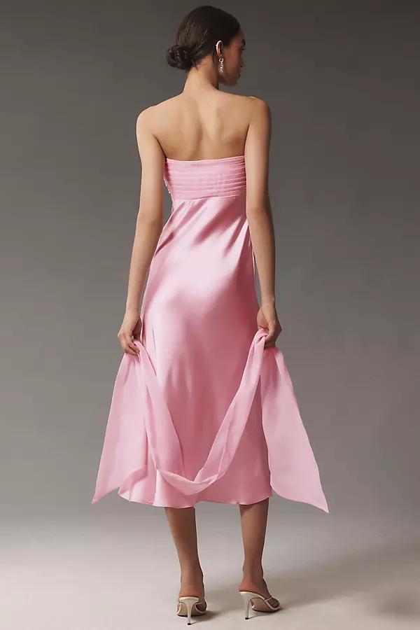 Crafted from stretch satin, the BHLDN Clara Midi Dress features a detached neck scarf, a sleek slip silhouette, and a strapless neckline. Clara Strapless Satin Scarf Midi Slip Dress by BHLDN in Pink, Women's, Size: 6, Polyester/Satin at Anthropologie